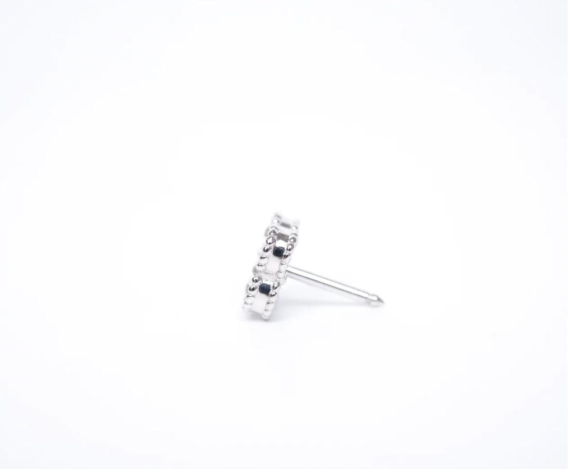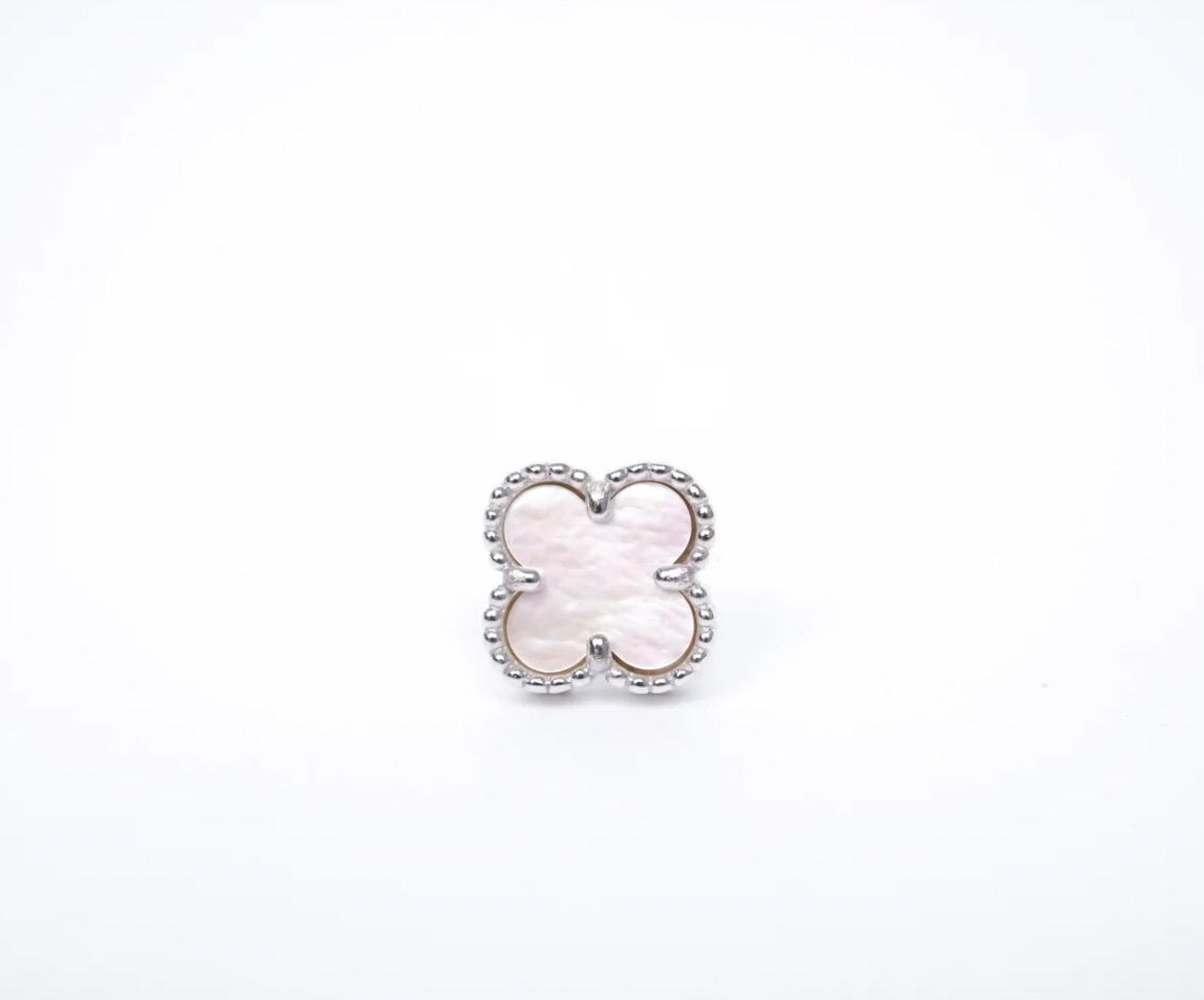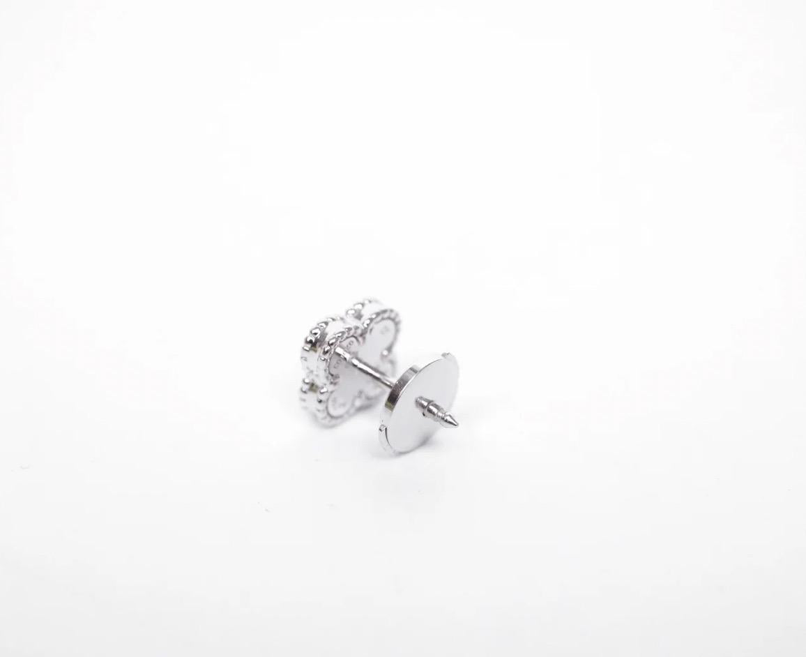Aretes Van Cleef & Arpels Sweet Alhambra en oro blanco con nácar blanco.