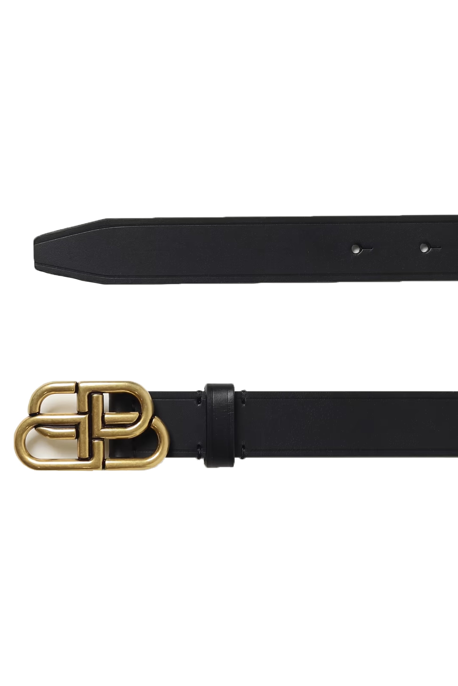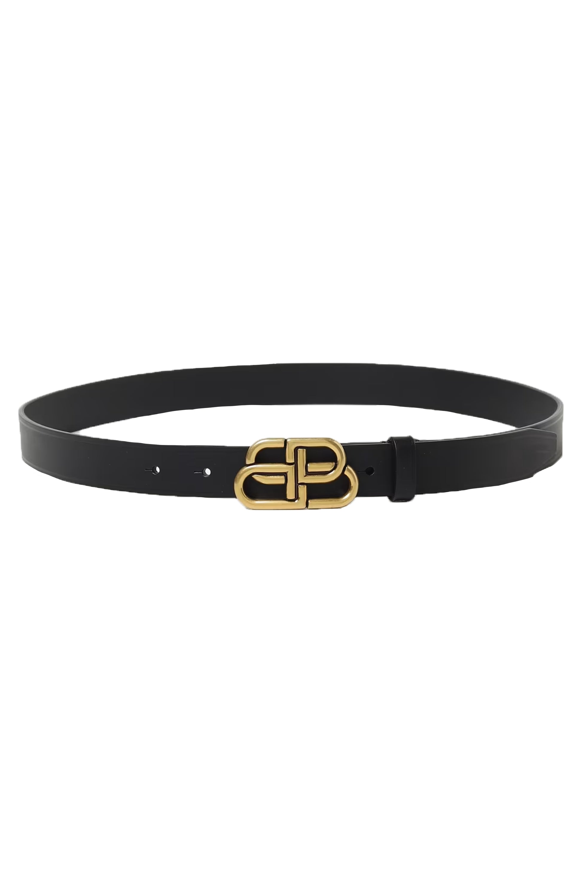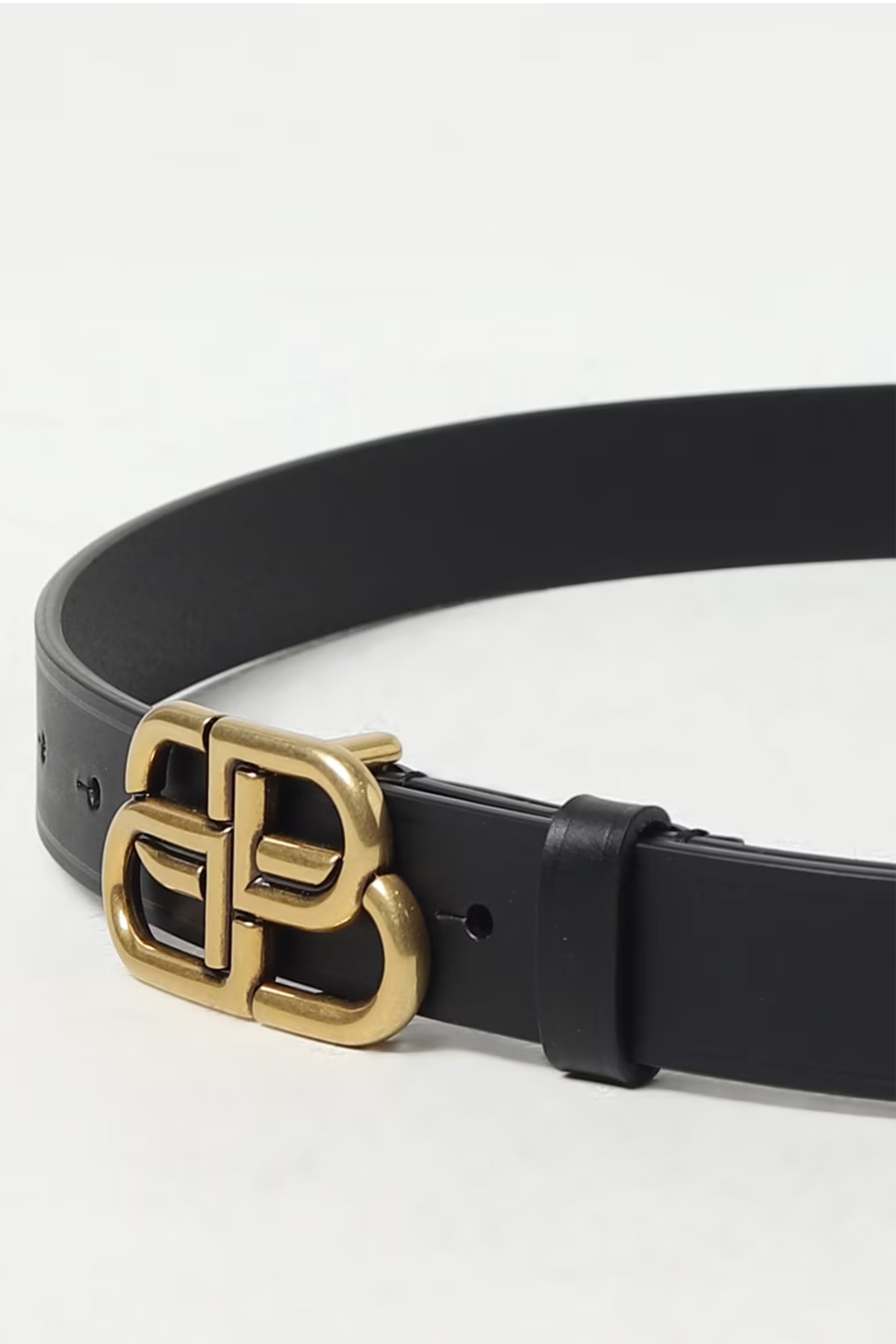 Confeccionado en piel negra lisa de alta calidad, el diseño se eleva gracias a la icónica hebilla BB en metal dorado envejecido, un símbolo de fuerza, identidad y presencia. Su silueta limpia y proporción precisa lo convierten en un accesorio versátil, capaz de transformar tanto un look minimalista como uno más estructurado.