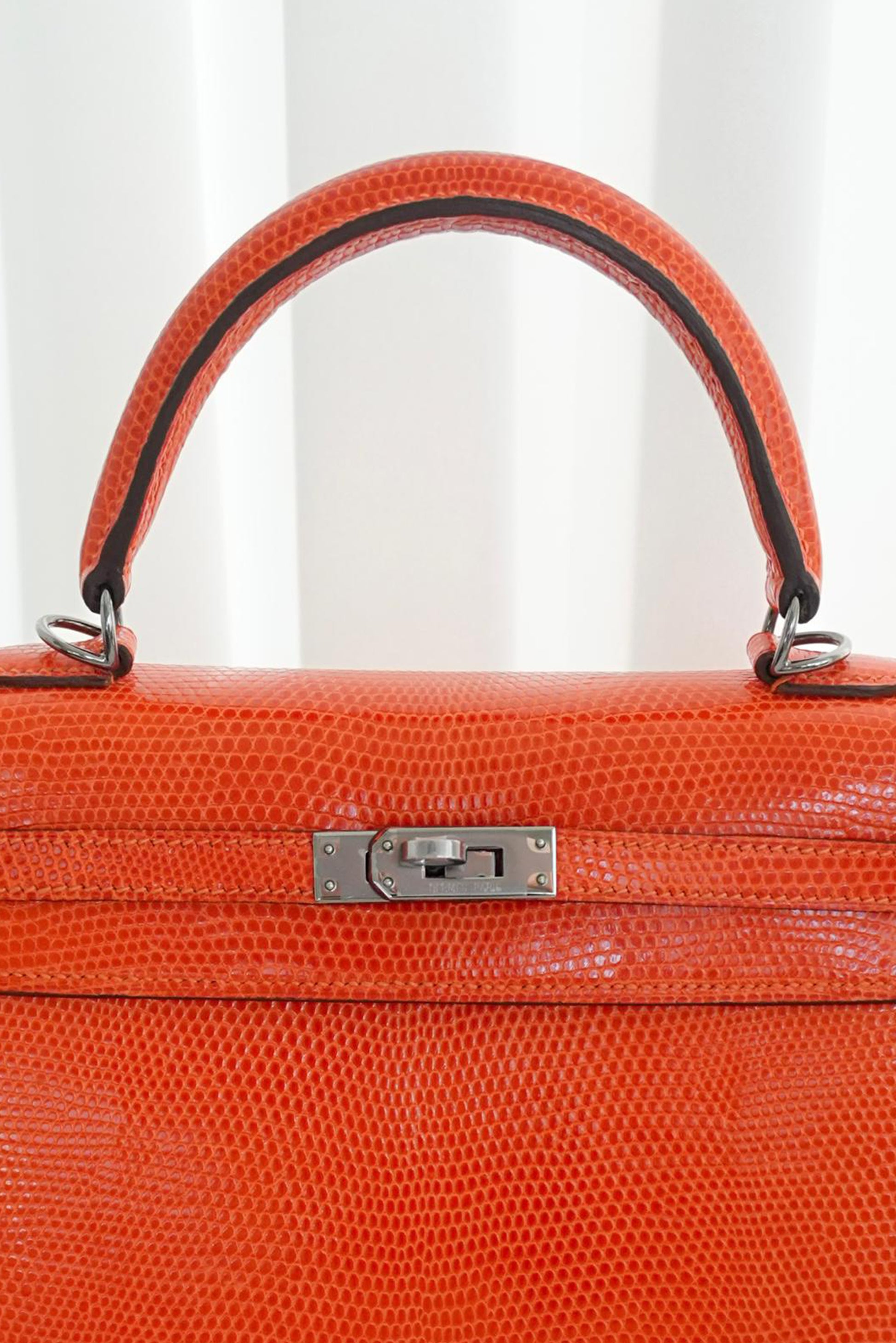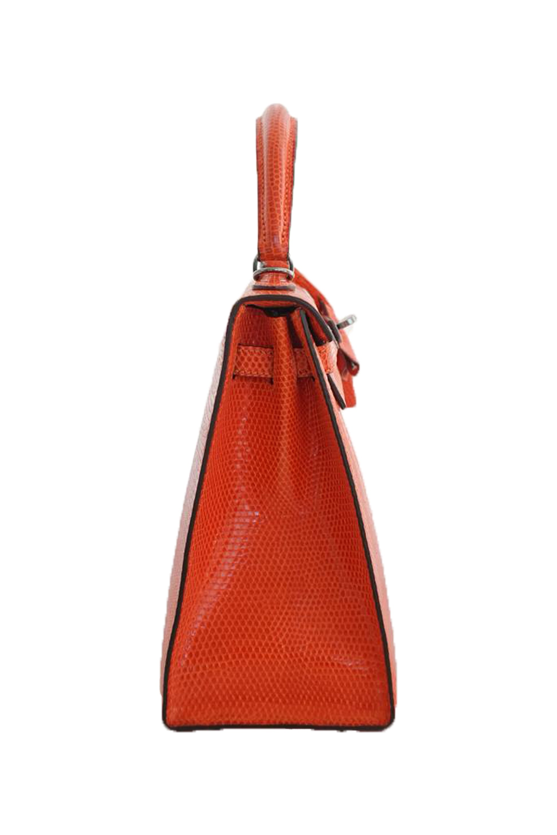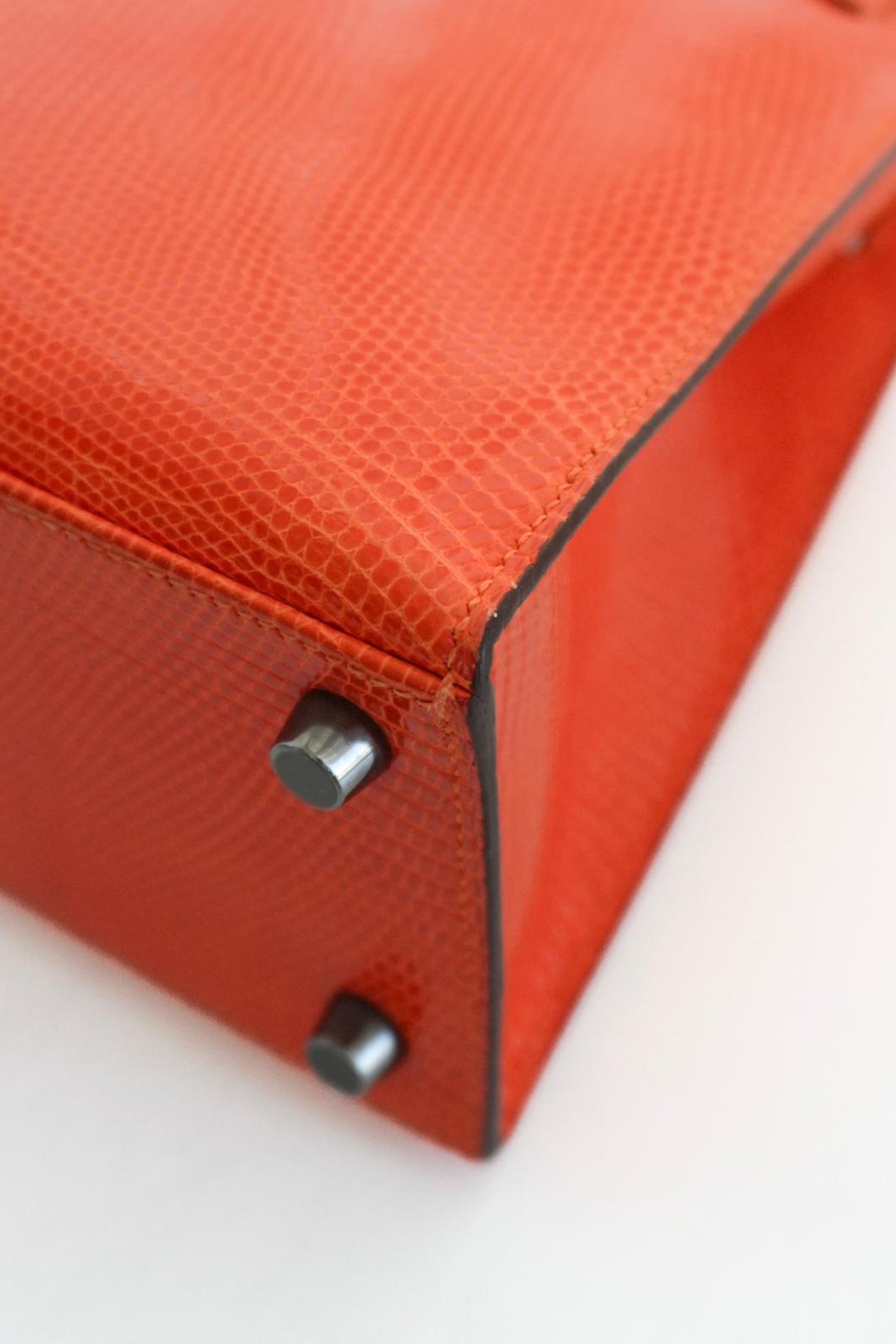HERMÈS KELLY 25 SELLIER LIZZARD POPPY ORANGE PHW