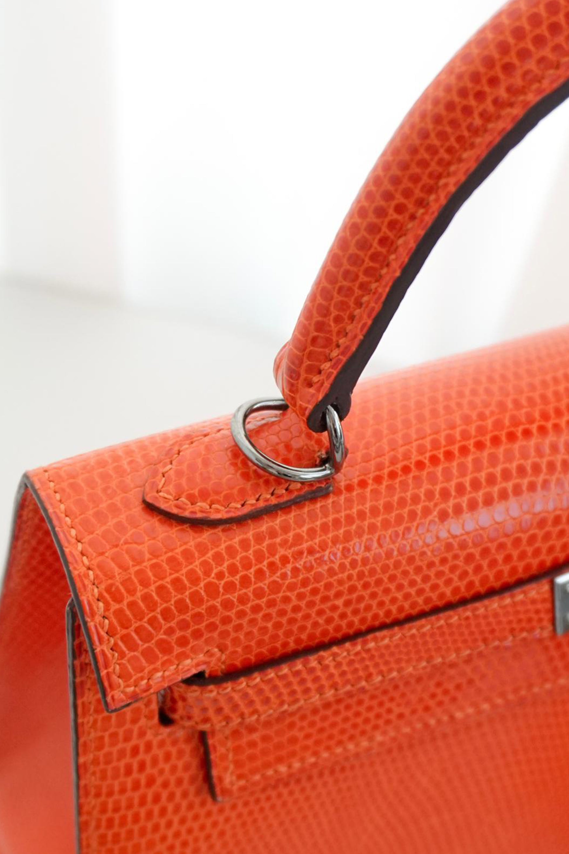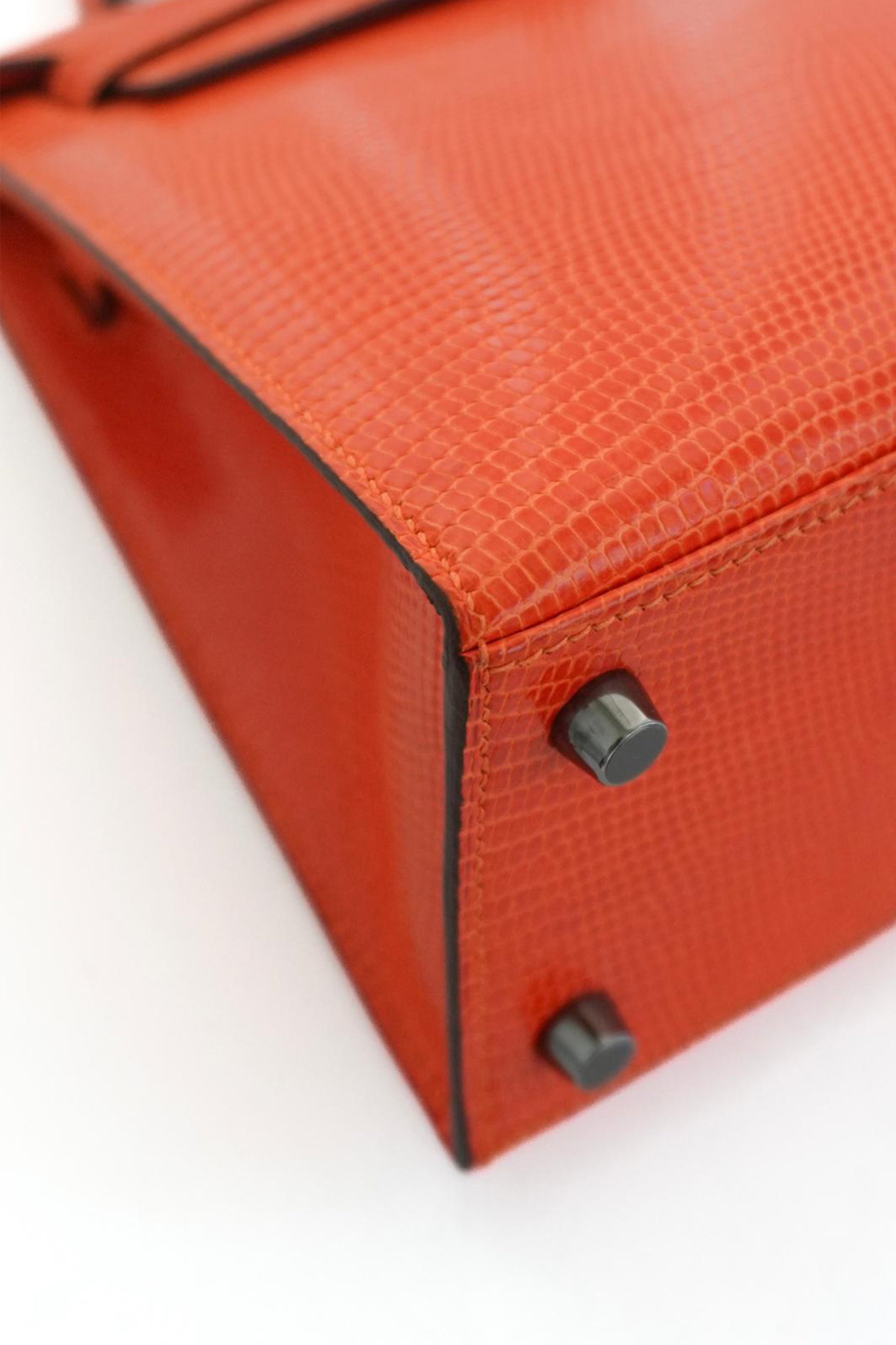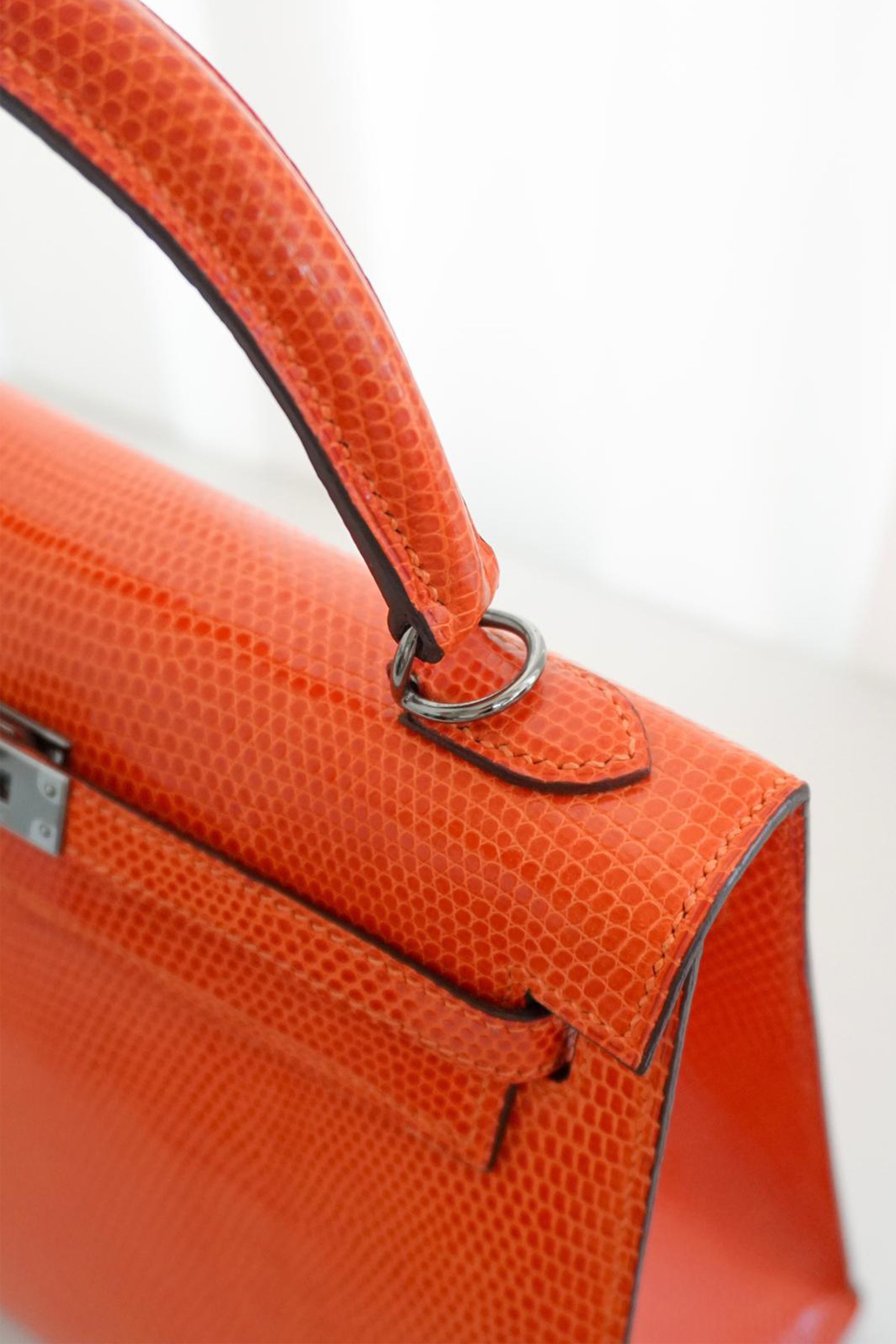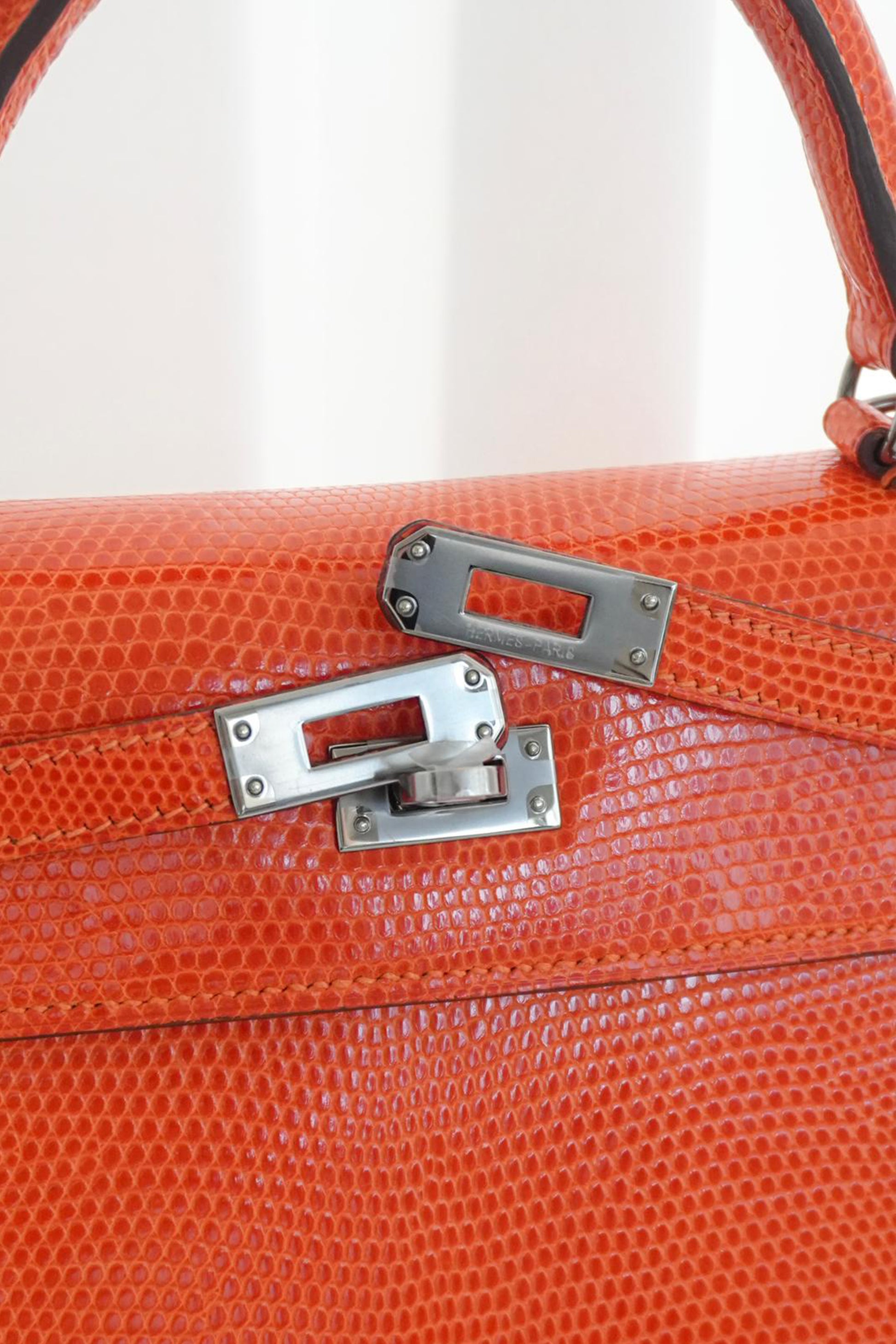 HERMÈS KELLY 25 SELLIER LIZZARD POPPY ORANGE PHW