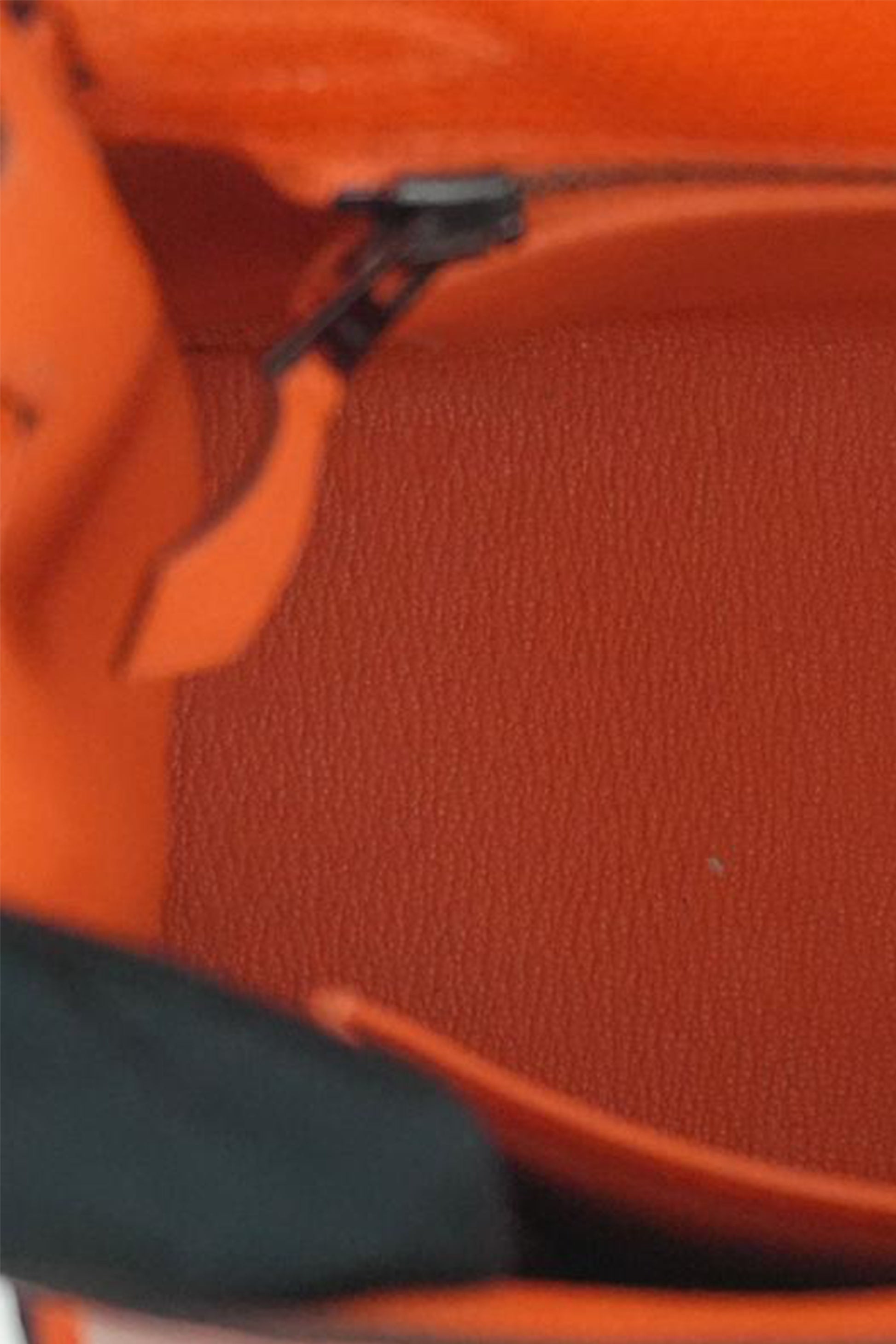 La piel de lagarto, una de las más exclusivas de Hermès, aporta un brillo natural y un patrón perfectamente simétrico. Los herrajes en paladio (PHW) complementan el color con un contraste moderno y refinado.