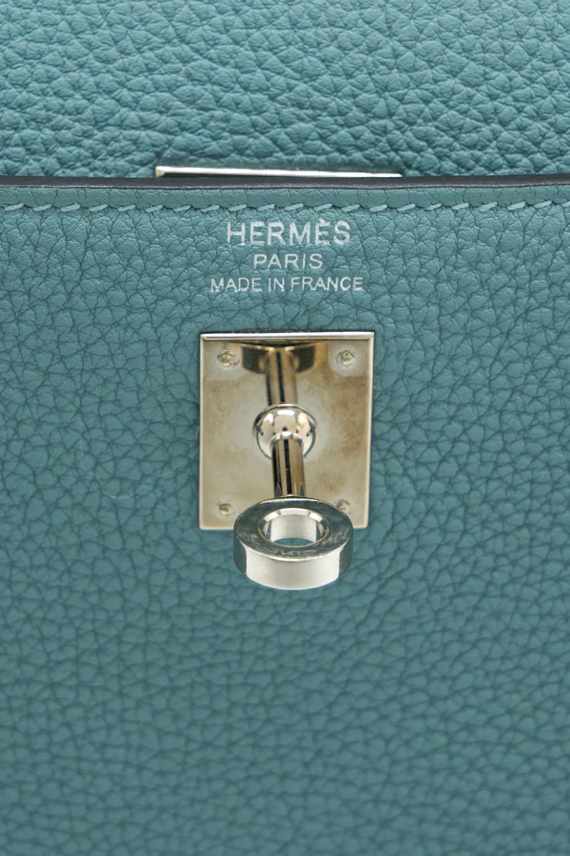 El cuero Epsom, uno de los más ligeros y duraderos de Hermès, garantiza resistencia y mantiene su forma a lo largo del tiempo. Los herrajes plateados (Palladium Hardware) complementan perfectamente la suavidad del color, aportando equilibrio y un toque contemporáneo.