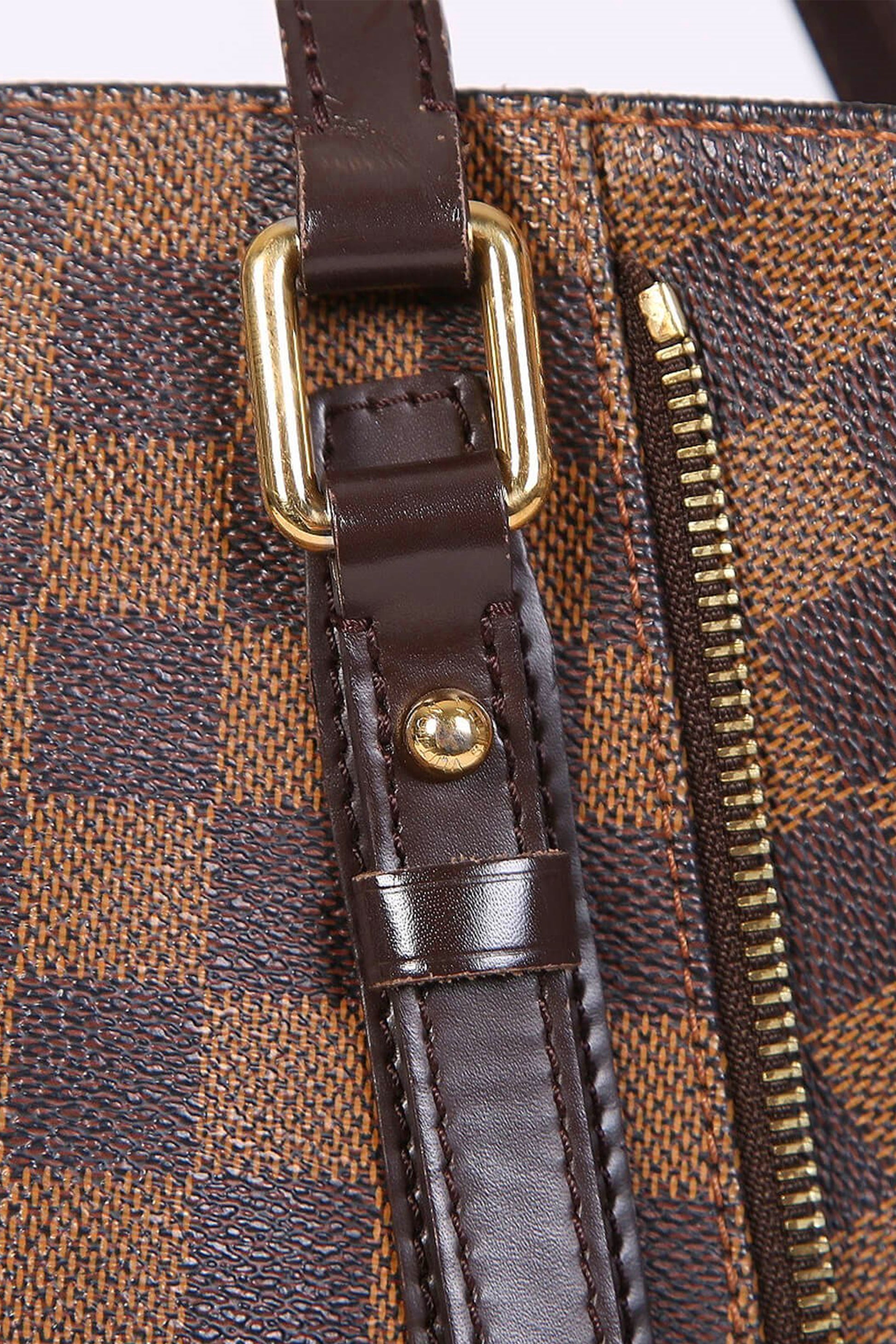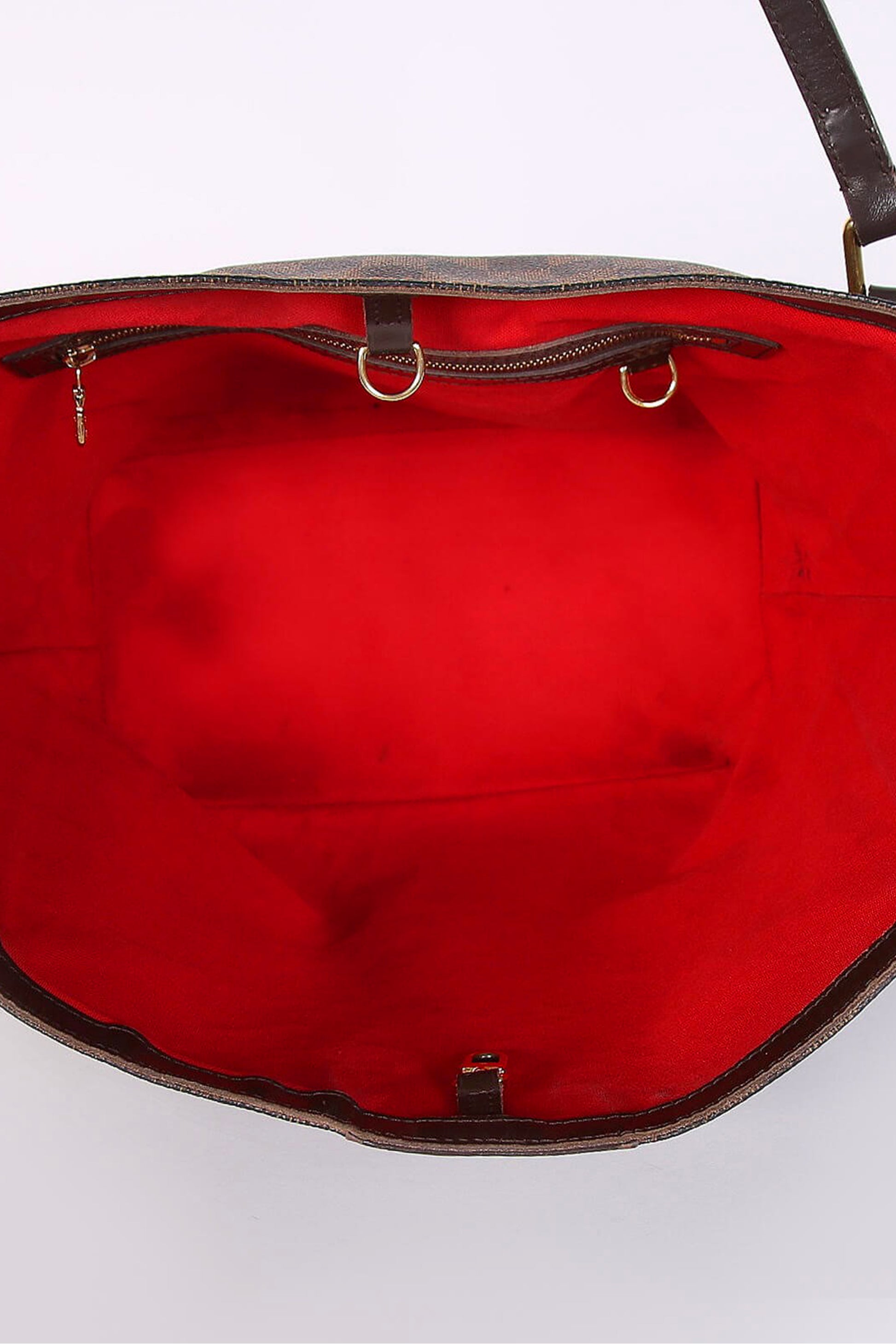 Las asas dobles de cuero marrón oscuro y los herrajes dorados añaden el toque característico de Louis Vuitton, equilibrando lujo y comodidad. Su interior amplio con forro textil y bolsillo con cremallera lo convierten en una opción perfecta tanto para la ciudad como para viajes.