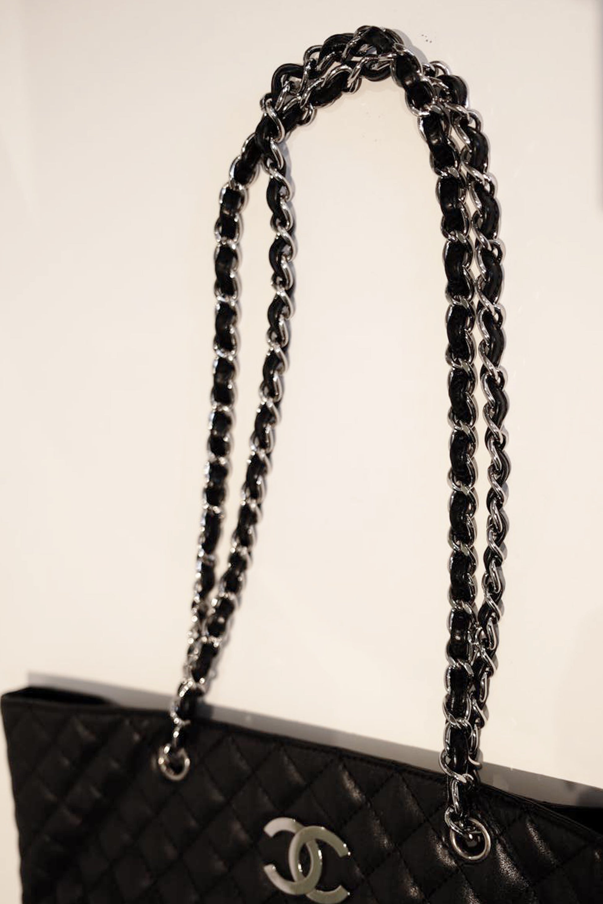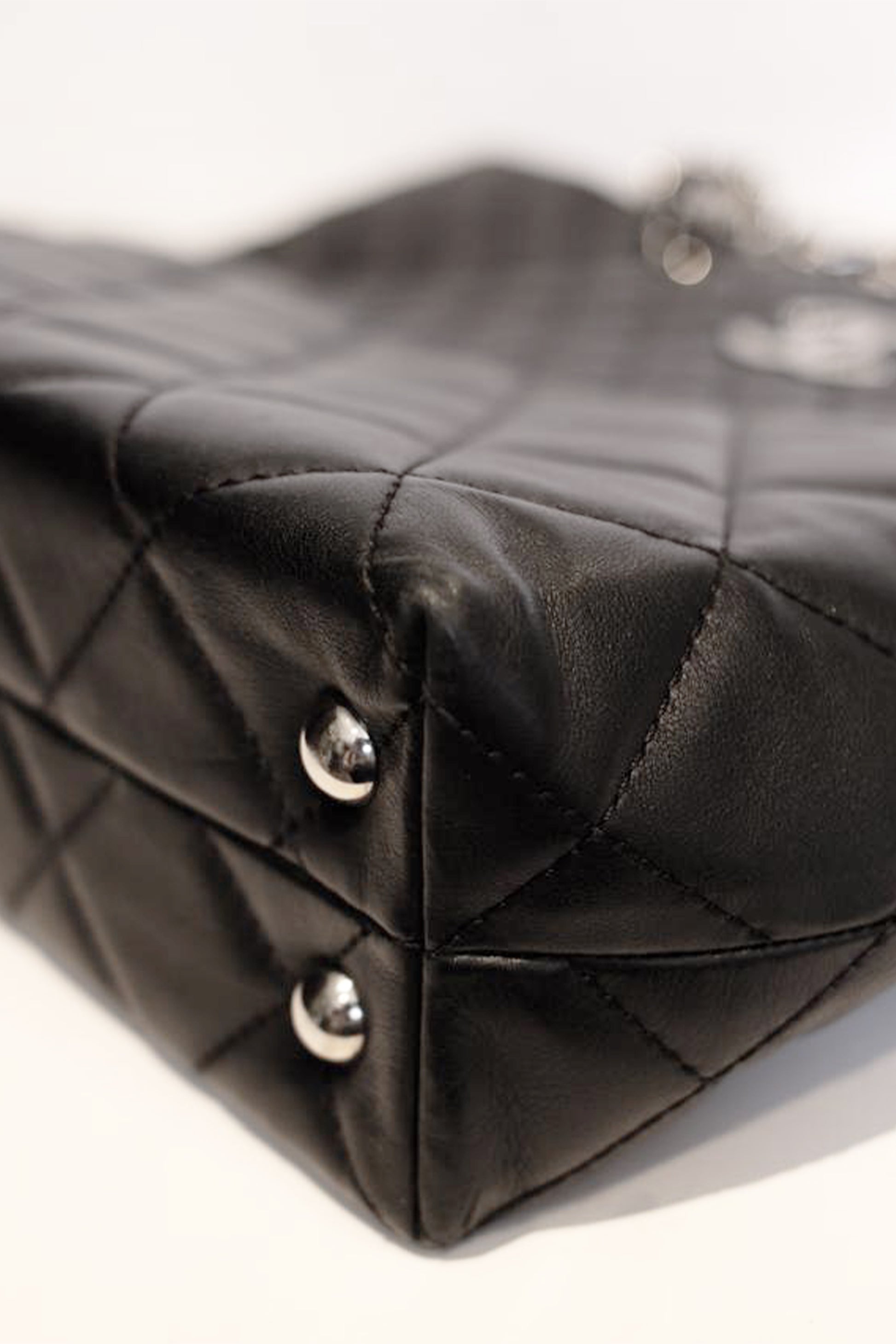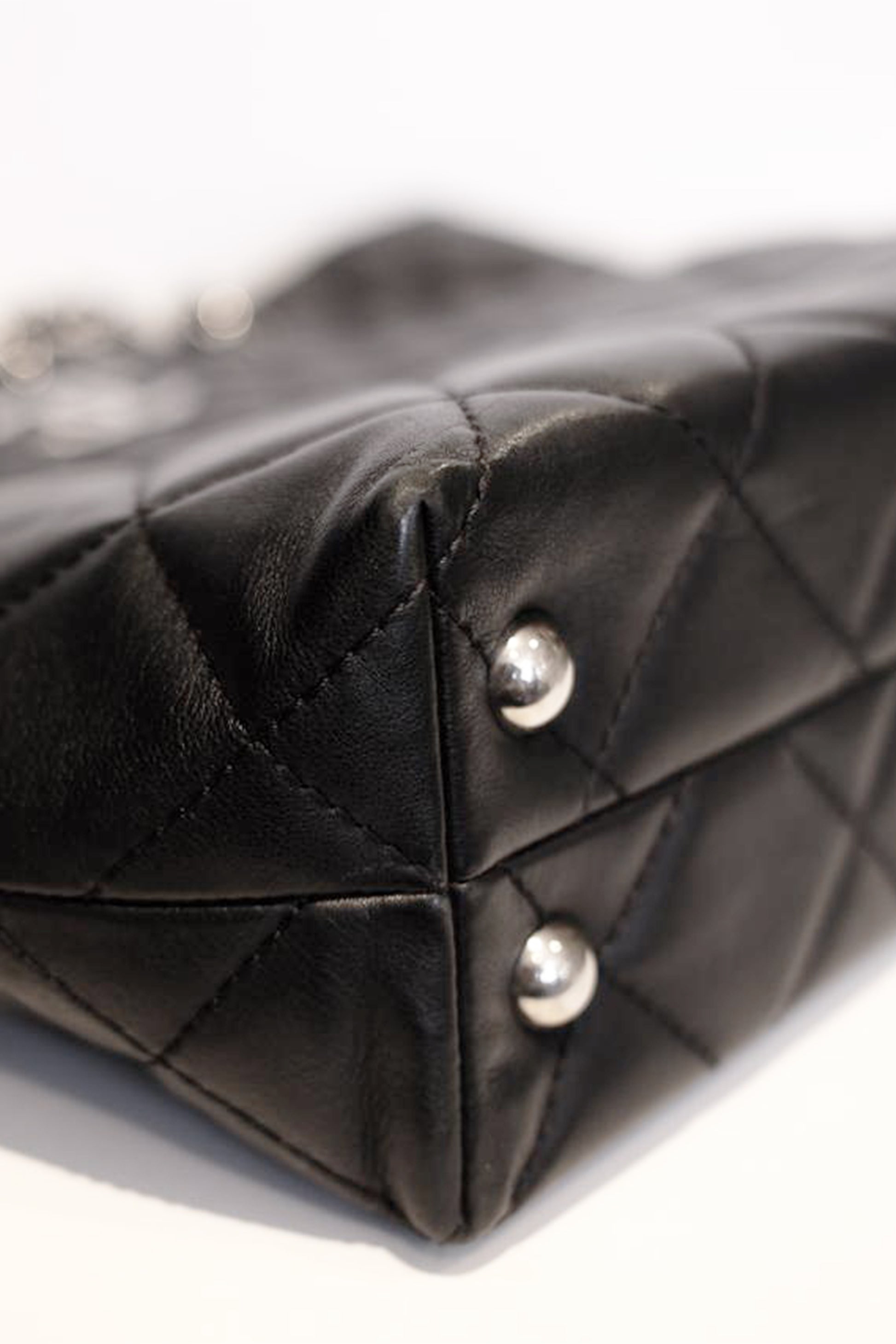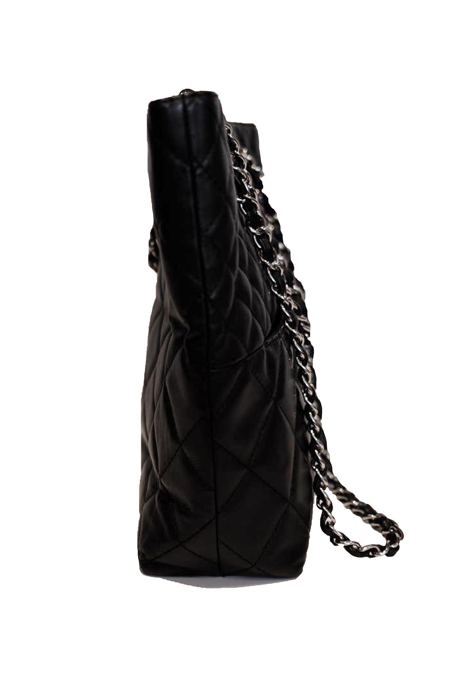 Este elegante Shopper Tote de Chanel combina la esencia clásica de la Maison con un diseño funcional y contemporáneo. Confeccionado en piel negra acolchada con patrón diamante (quilted), presenta el icónico logo CC entrelazado en la parte frontal en acabado plateado, aportando un contraste sofisticado y moderno. Su silueta amplia y estructurada lo convierte en el bolso ideal para el día a día sin perder el ADN elegante de Chanel.