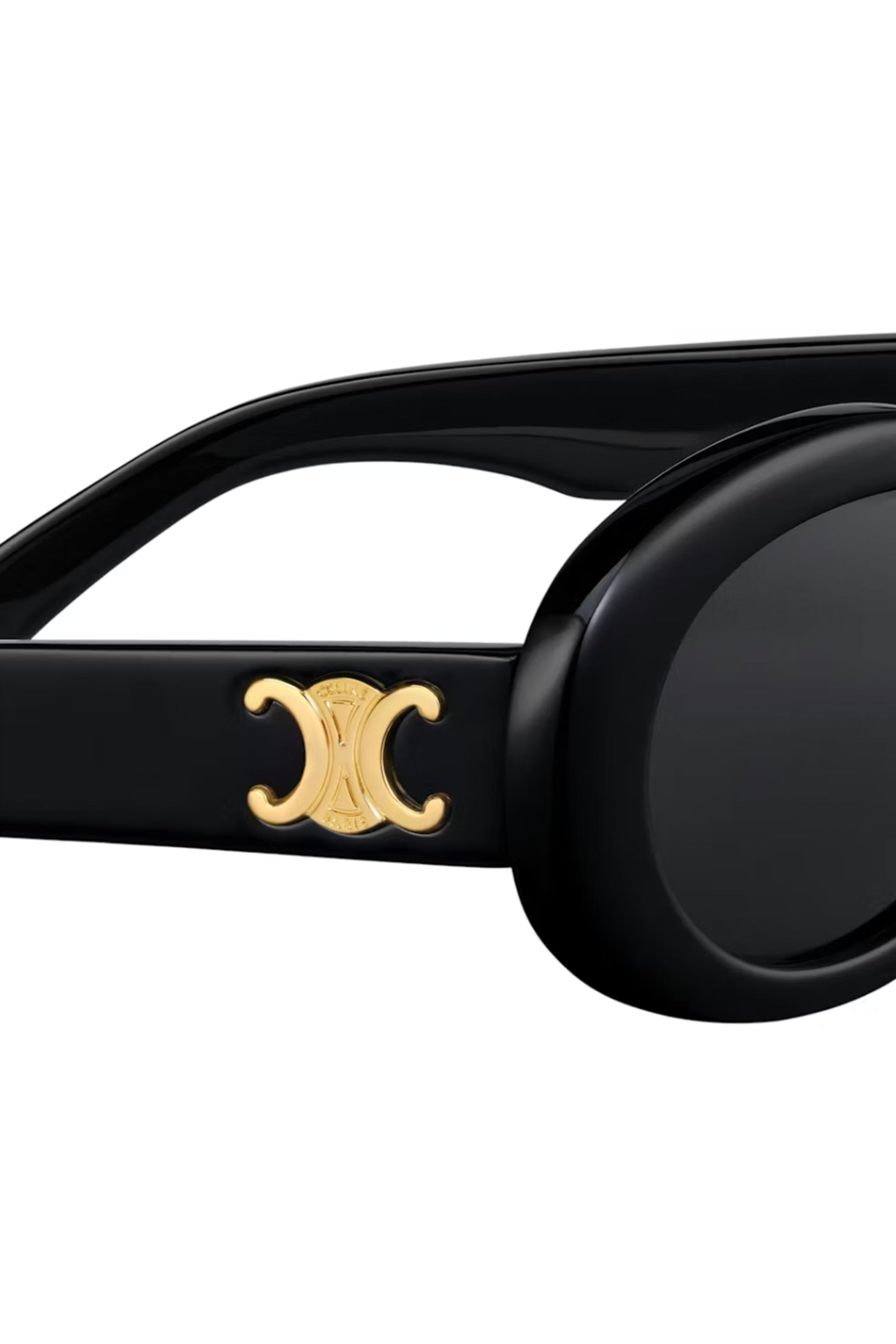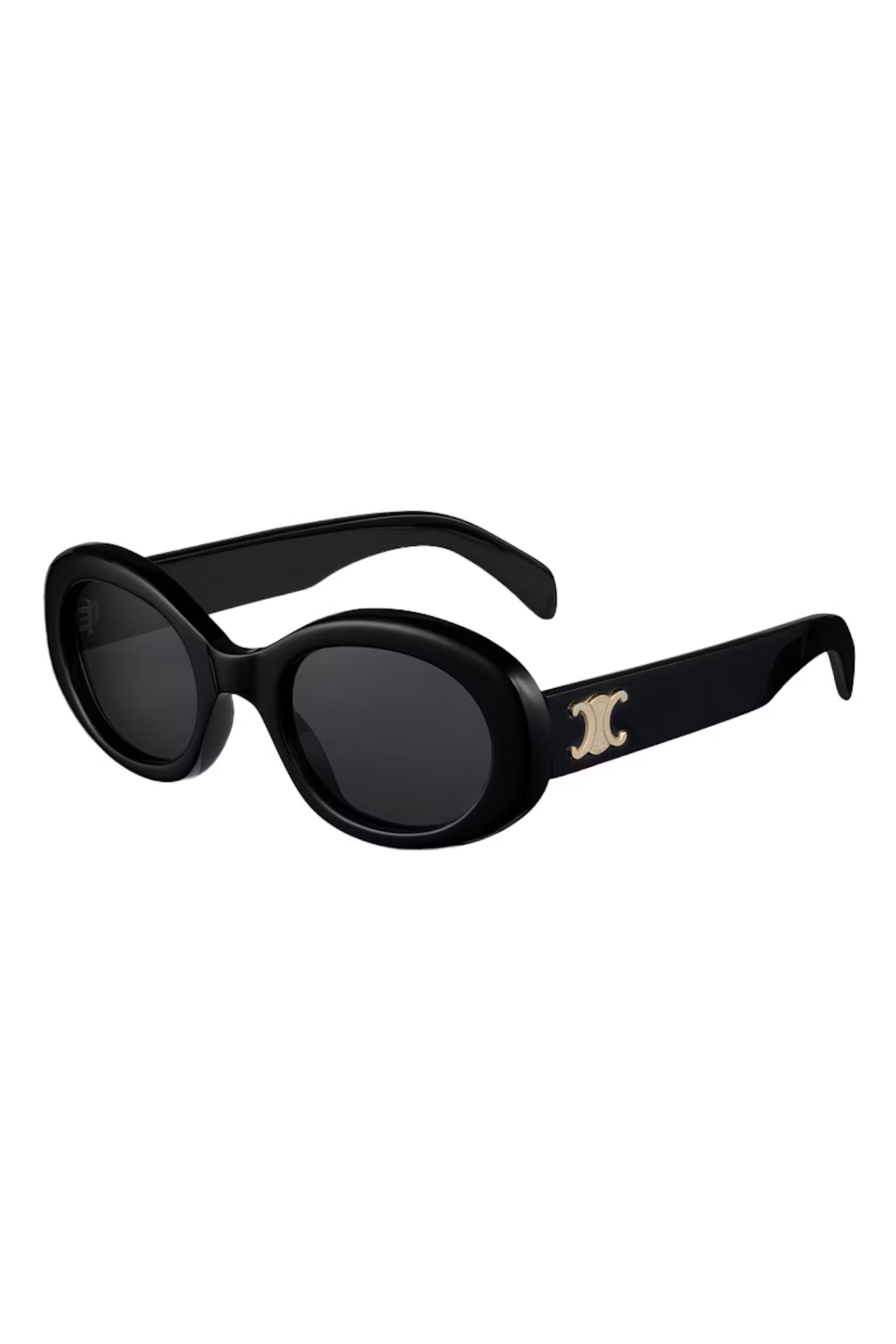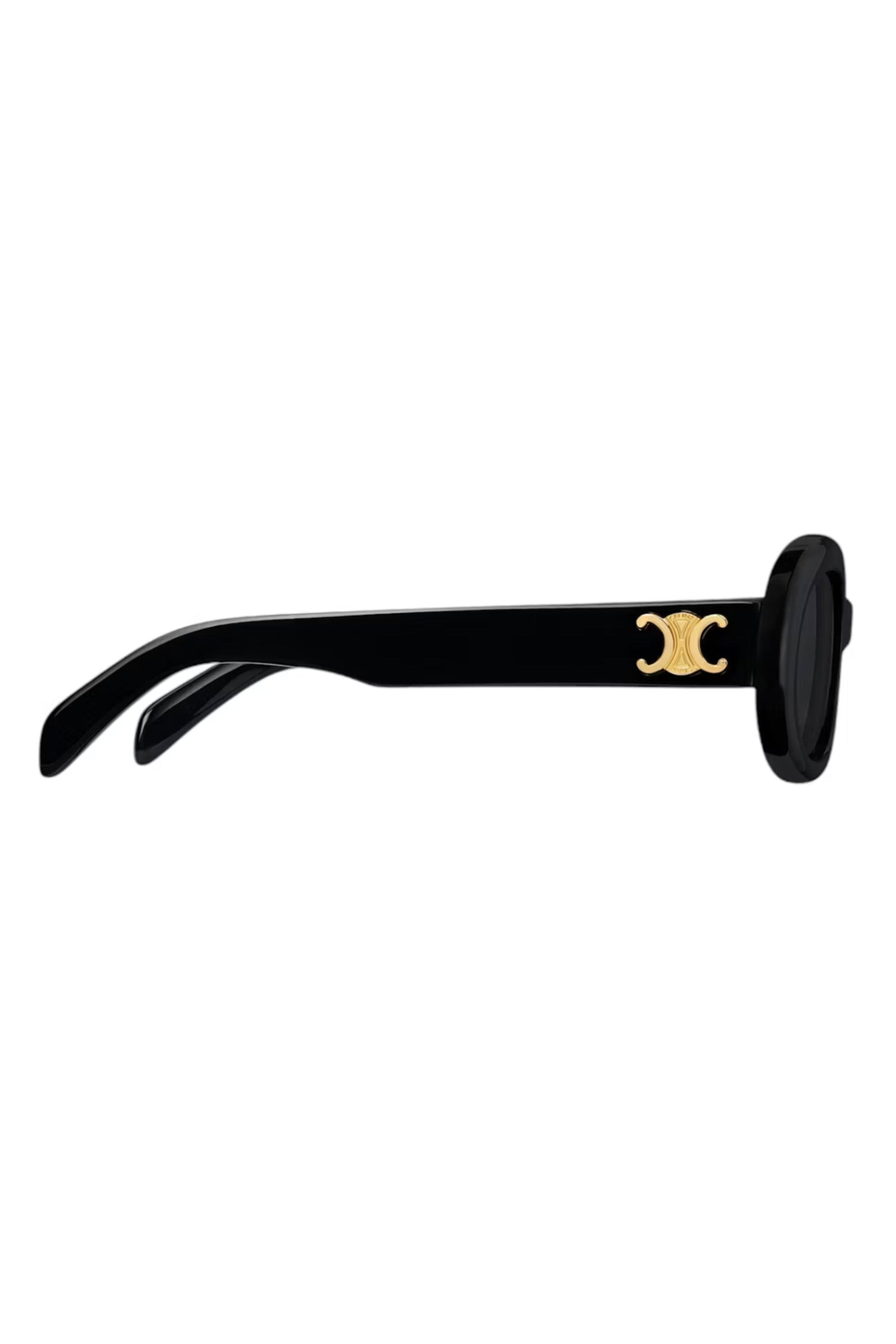 Gafas de sol Celine Triomphe 01 confeccionadas en acetato negro de alta calidad, con diseño ovalado de inspiración retro y estética bold. Incorporan el icónico logo Triomphe metálico en color dorado en las varillas, símbolo distintivo de la maison. Un modelo elegante y atemporal que eleva cualquier look con carácter y sofisticación.
