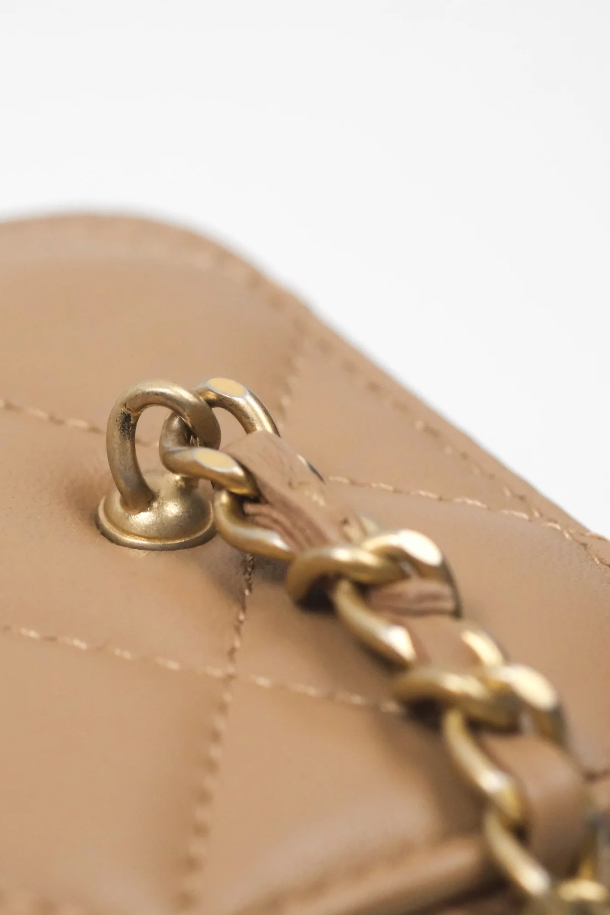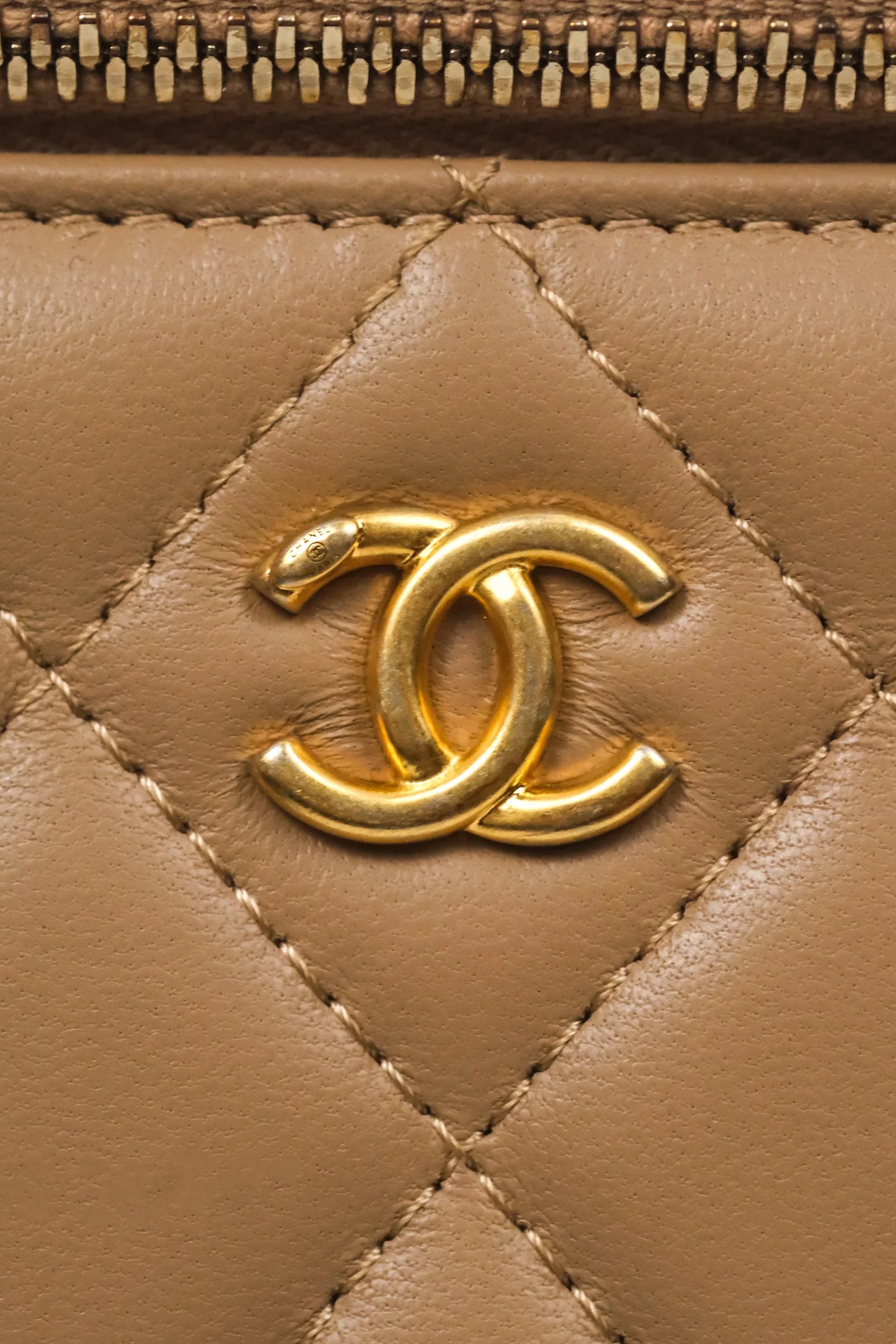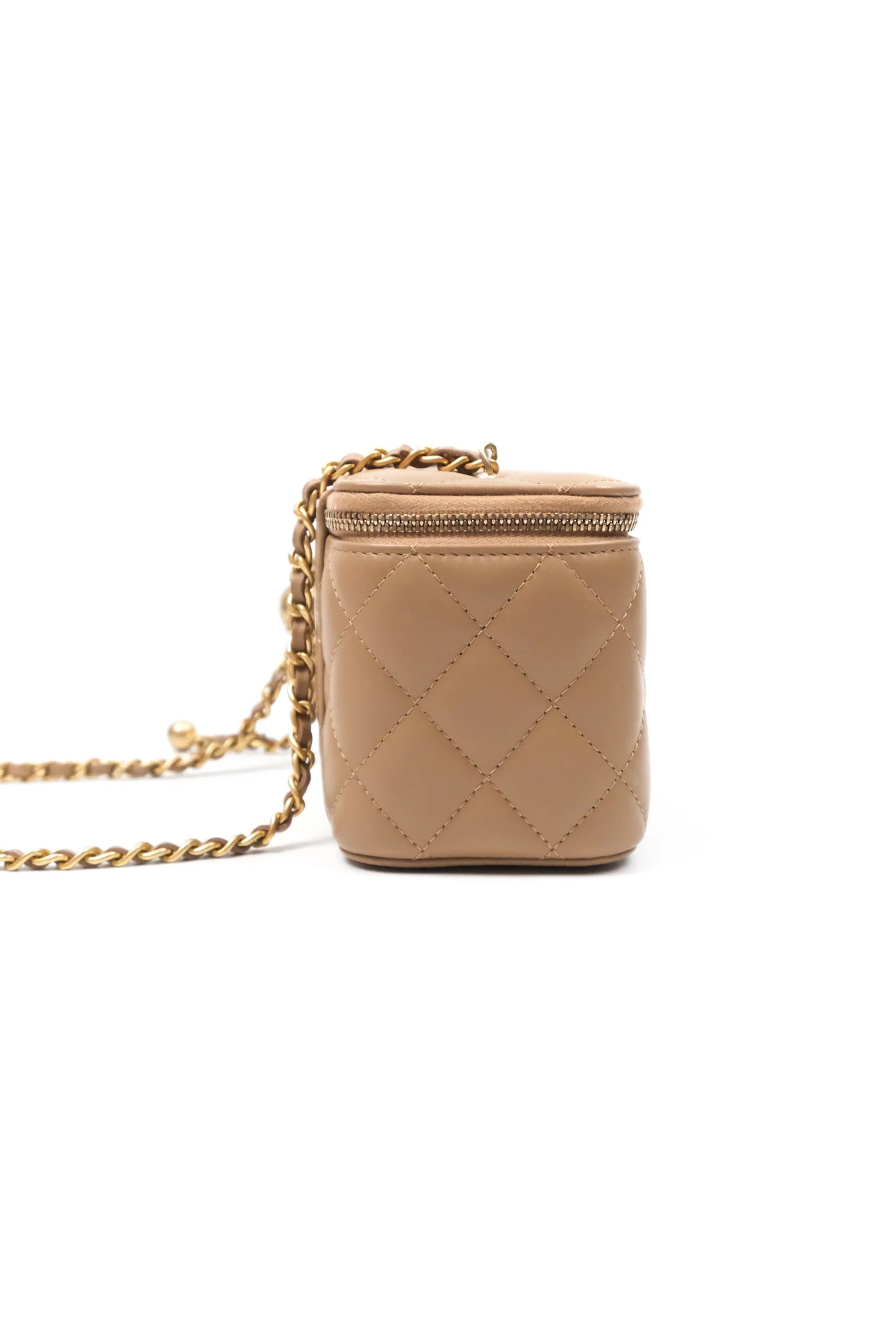 CHANEL PEARL CRUSH VANITY WITH CHAIN AGED GOLD HARDWARE BEIGE