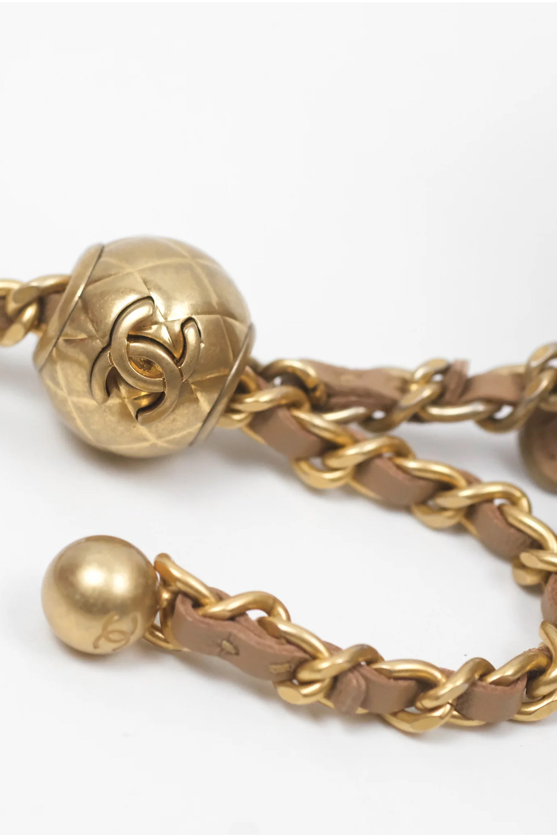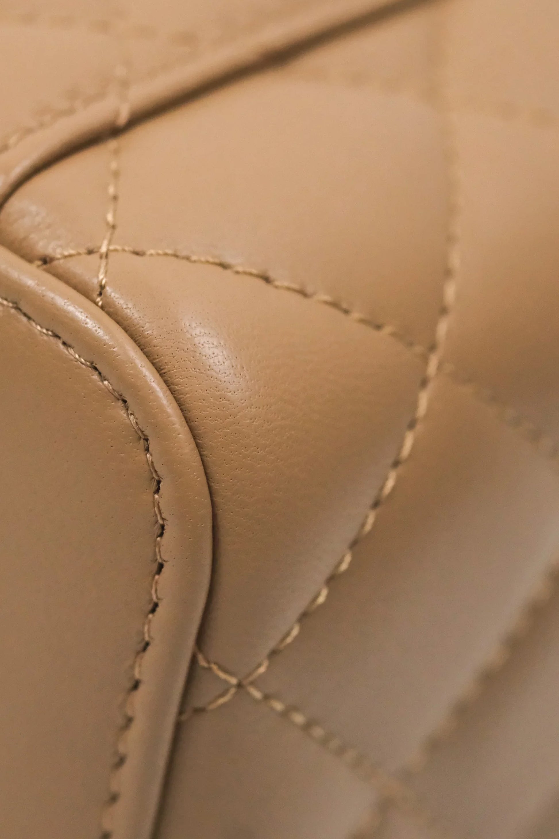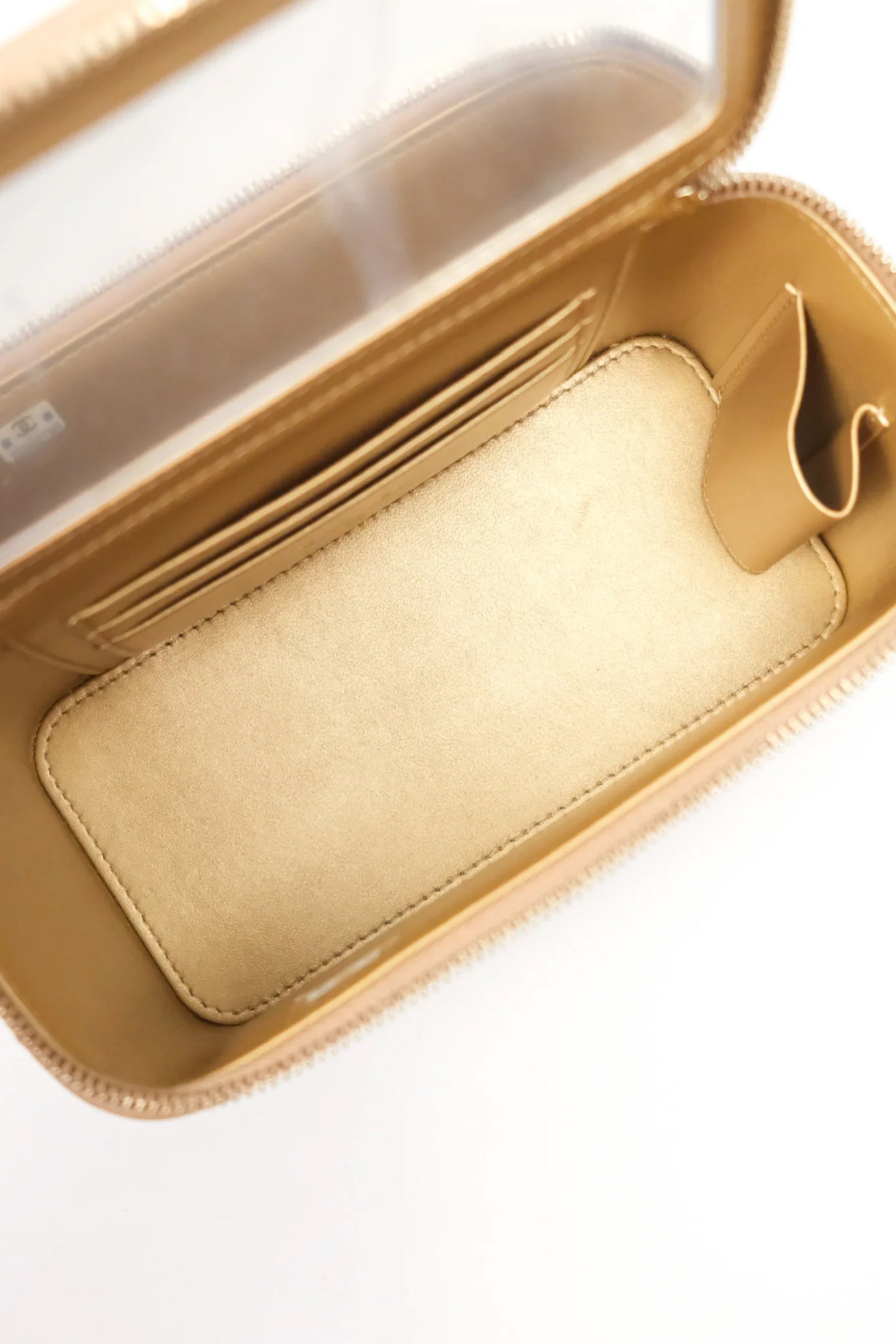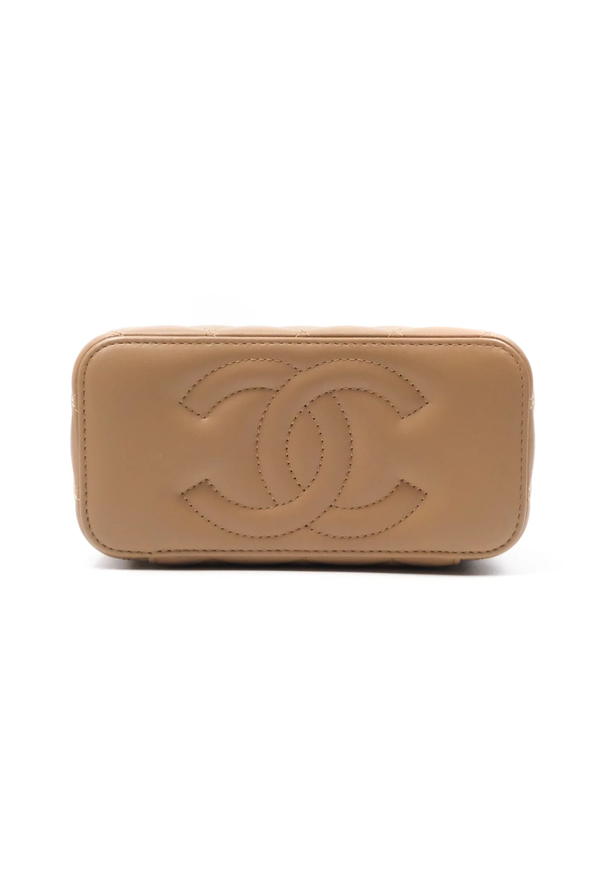 CHANEL PEARL CRUSH VANITY WITH CHAIN AGED GOLD HARDWARE BEIGE