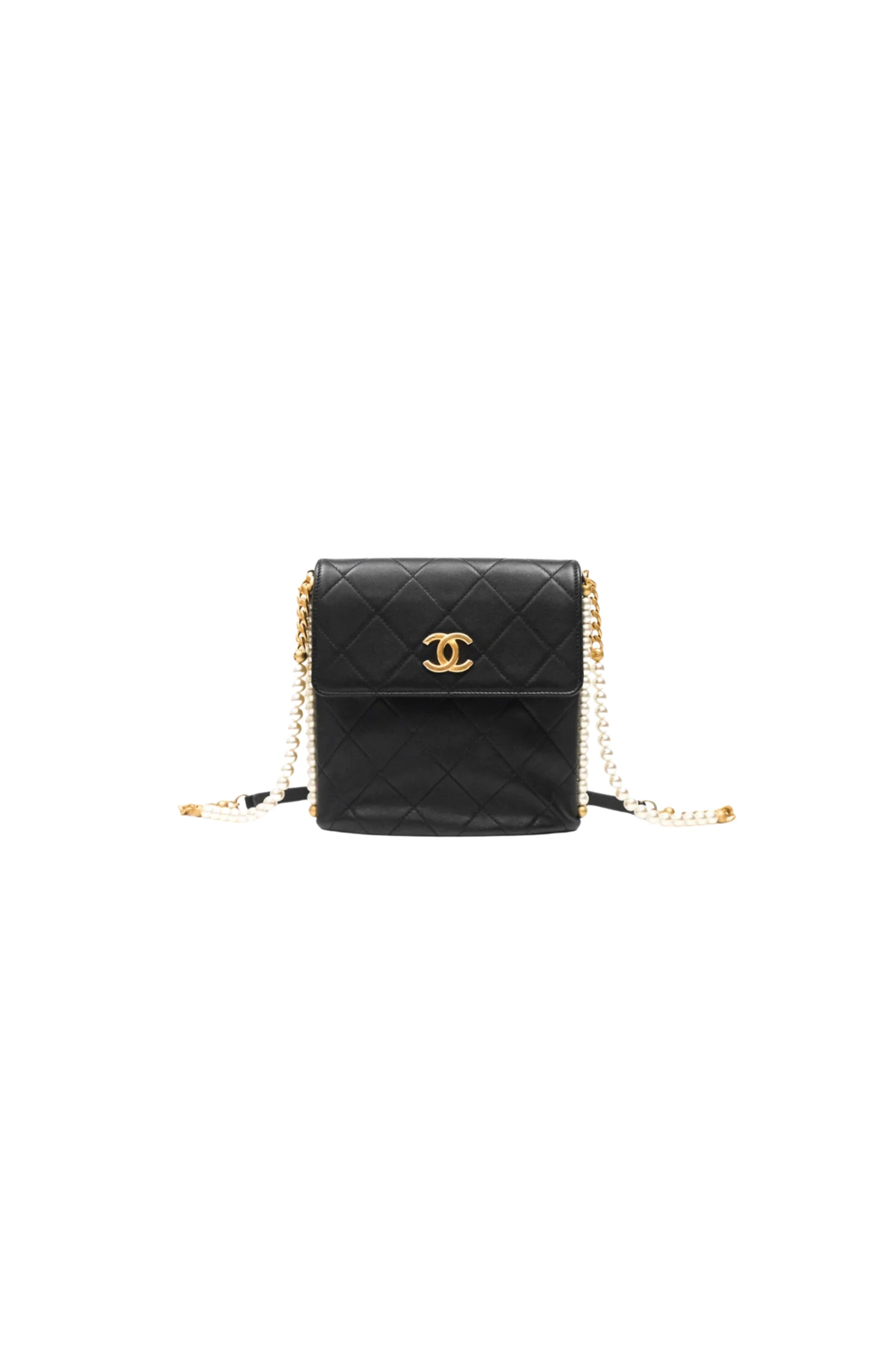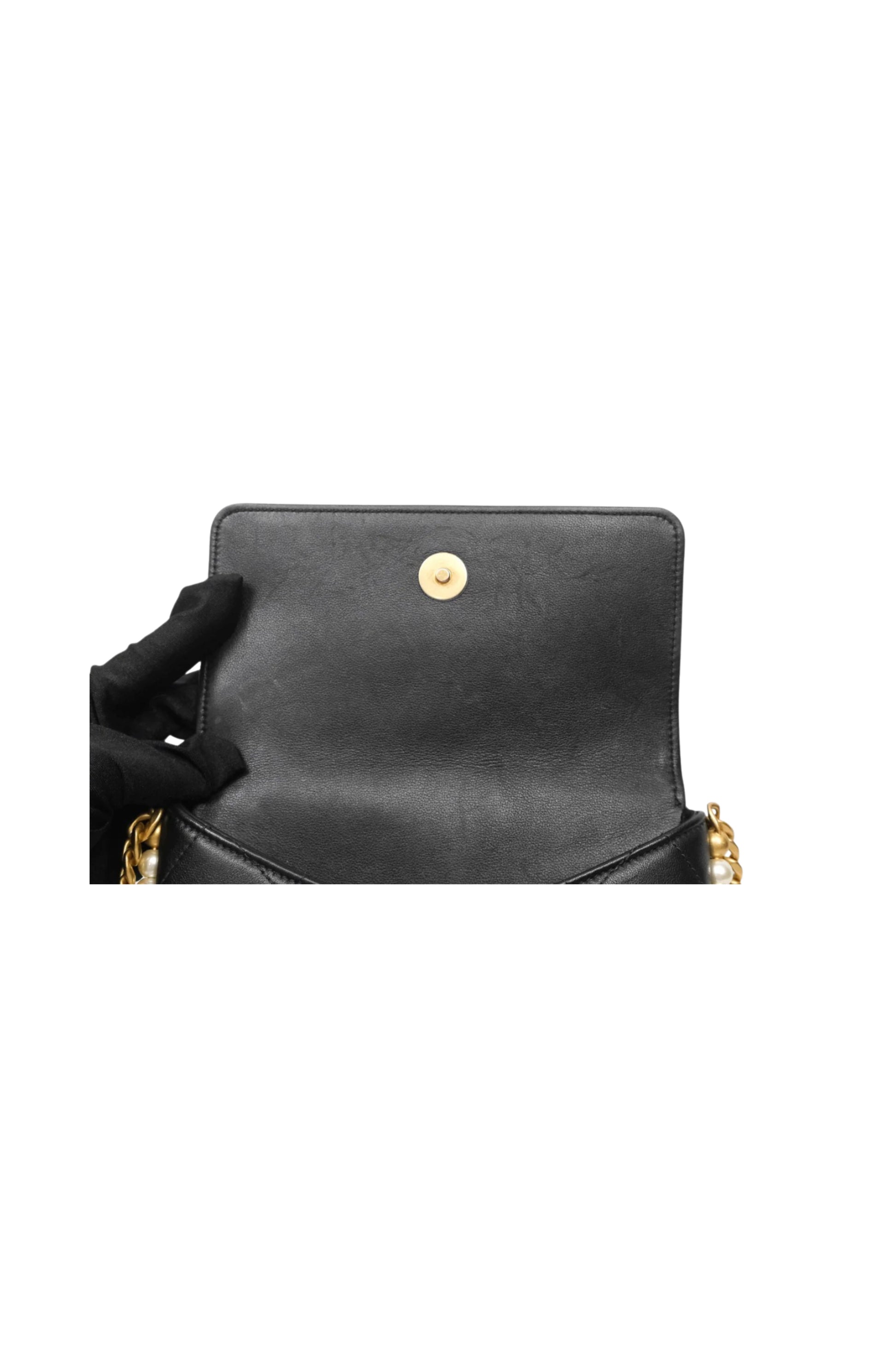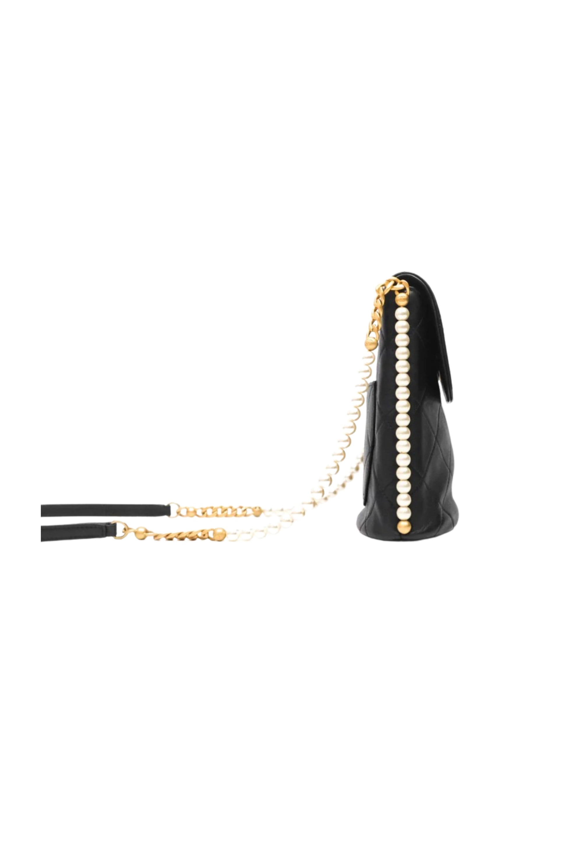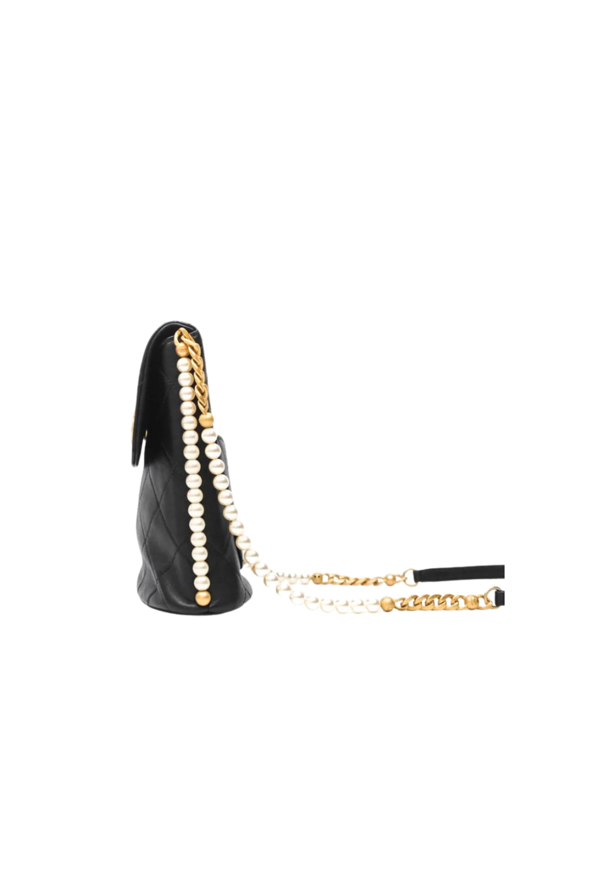 Chanel Small Pearl Hobo Bag en cuero Calfskin negro con herrajes Aged Gold.