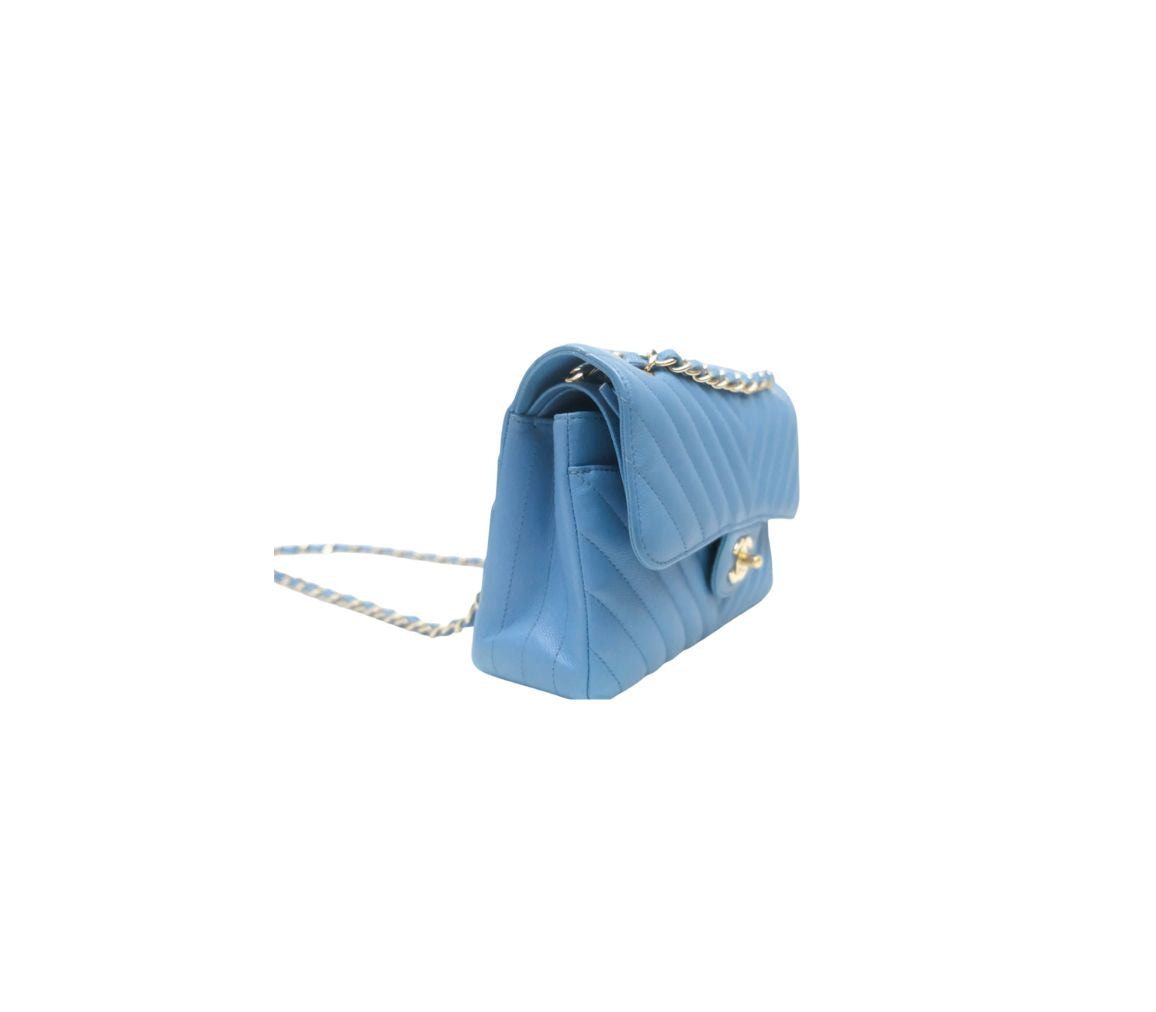 Chanel Small Classic Flap Chevron – Caviar Azul