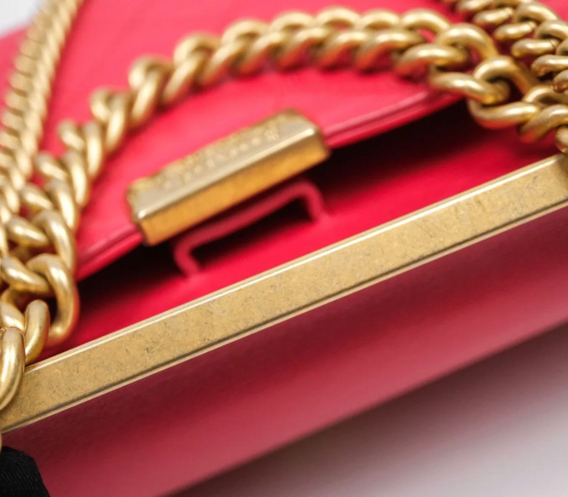 Micro rayas en los herrajes dorados, consistentes con un uso cuidadoso.