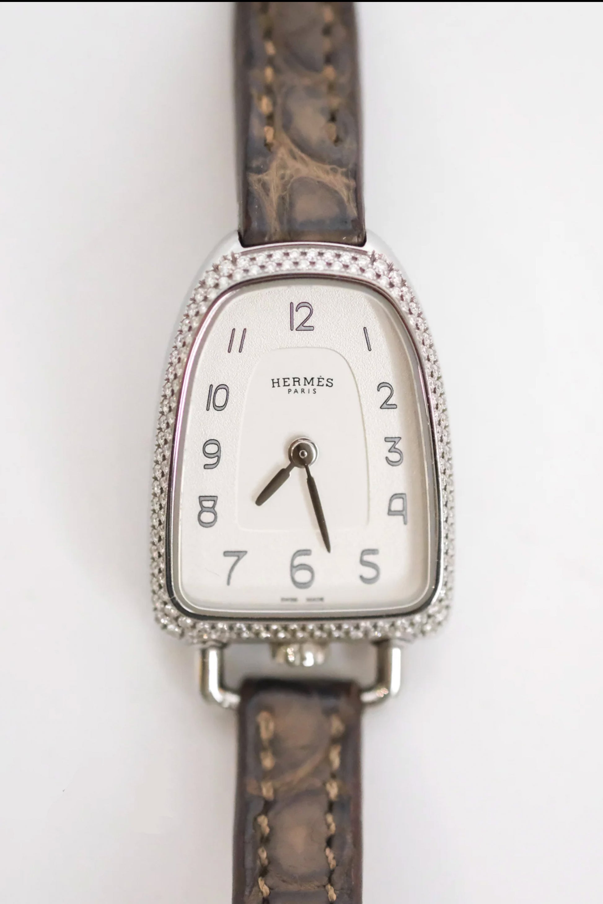 RELOJ HERMÈS GALOP D'HERMÈS 32MM CON DIAMANTES Y CORREA ALLIGATOR ÉTOUPE - (PHW)