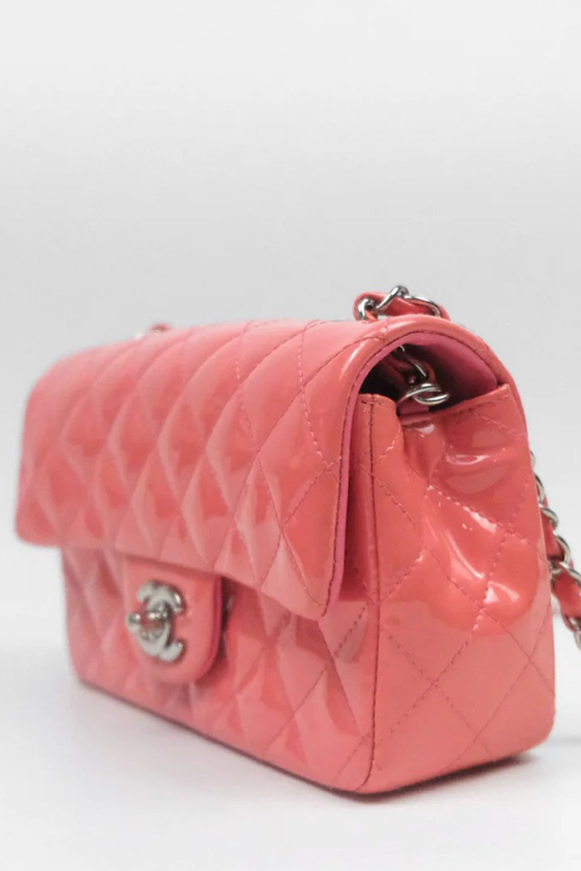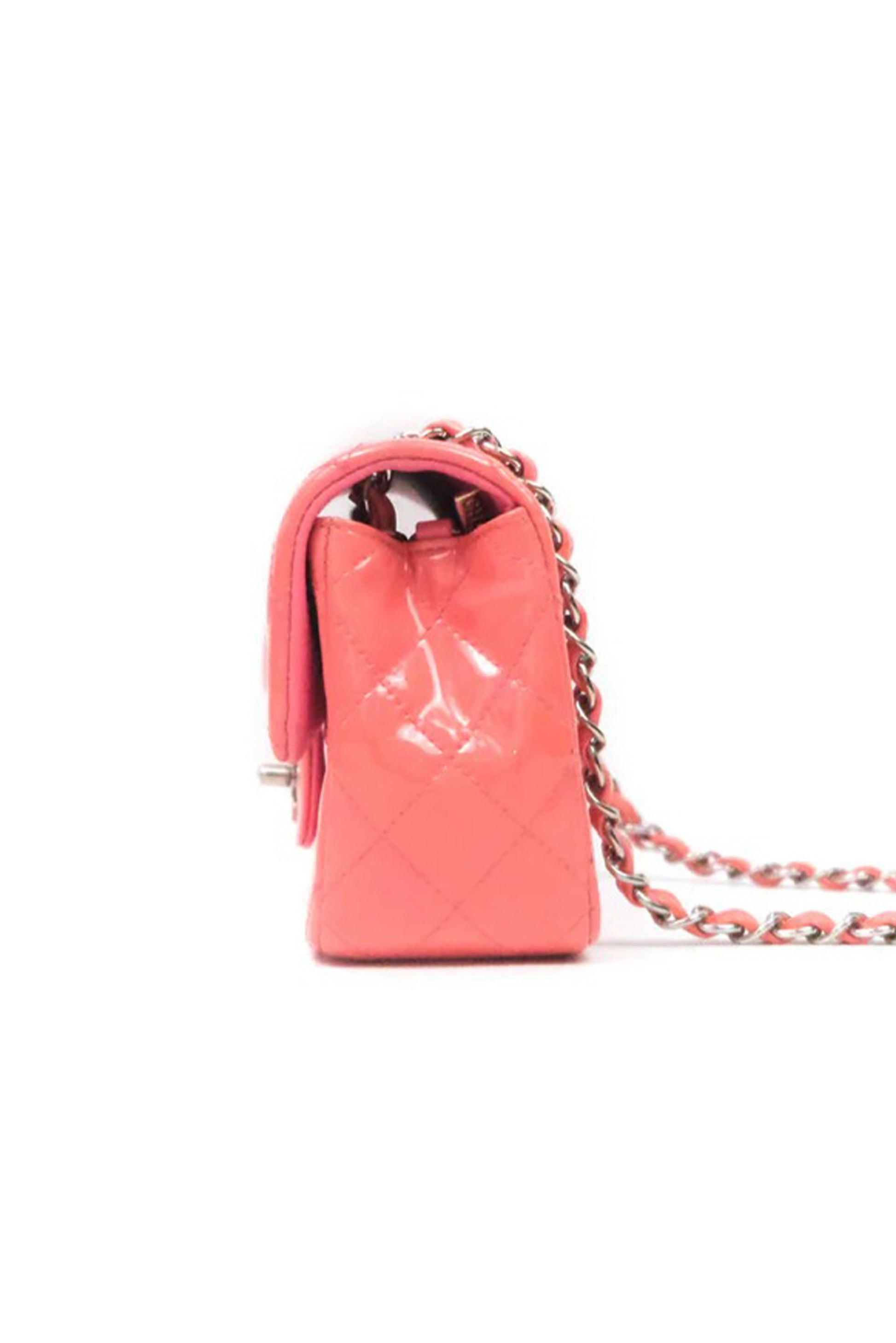 BOLSO CHANEL MINI RECTANGULAR CHAROL ROSA - (SHW)