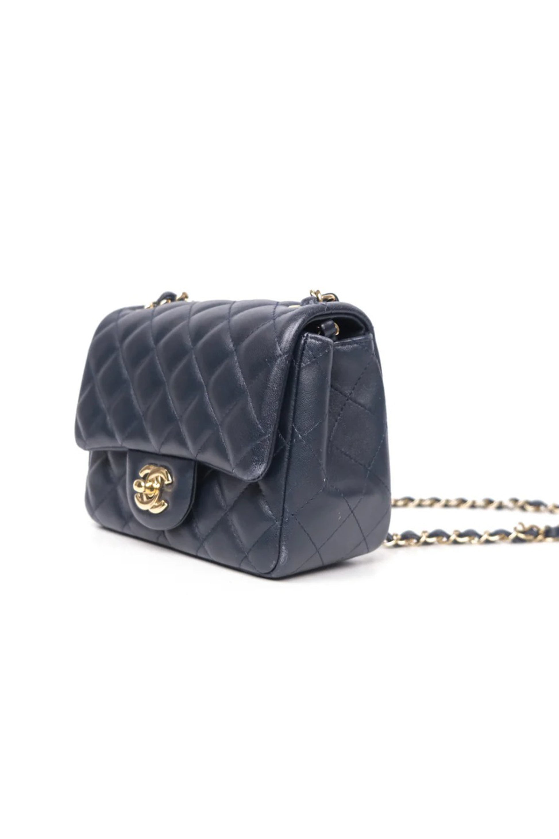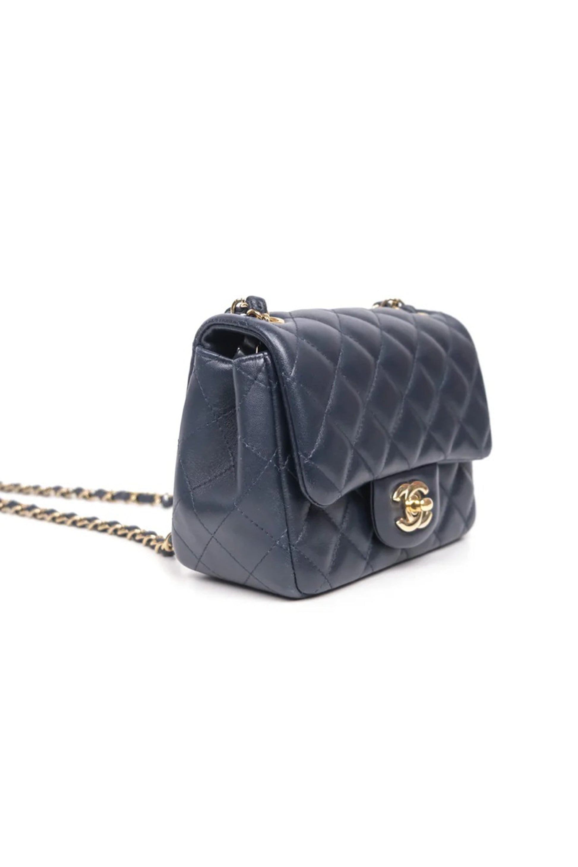 BOLSO CHANEL MINI SQUARE FLAP QUILTED LAMBSKIN NAVY BLUE - GHW