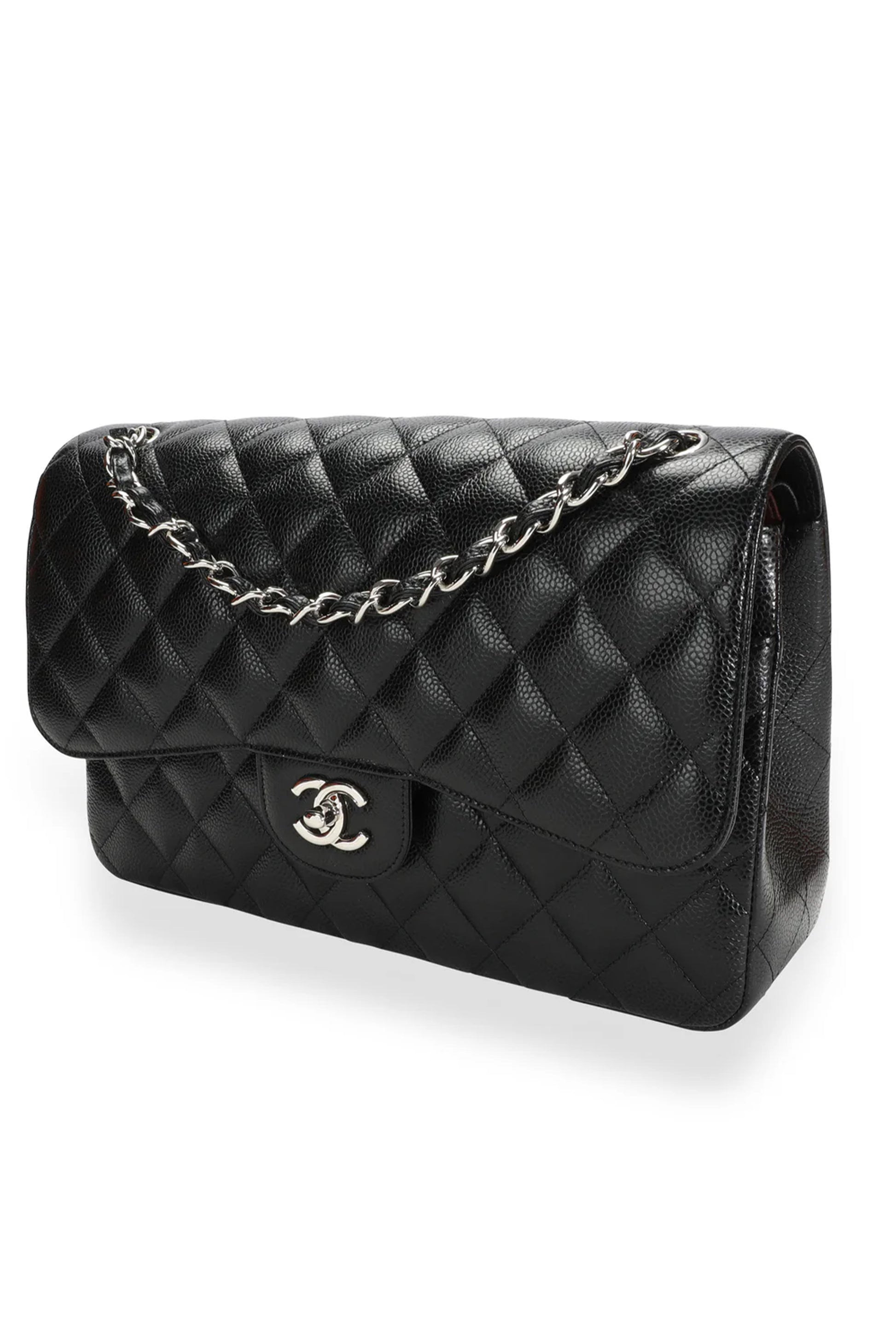 BOLSO CHANEL CLASSIC DOUBLE FLAP JUMBO CAVIAR NEGRO - (SHW)