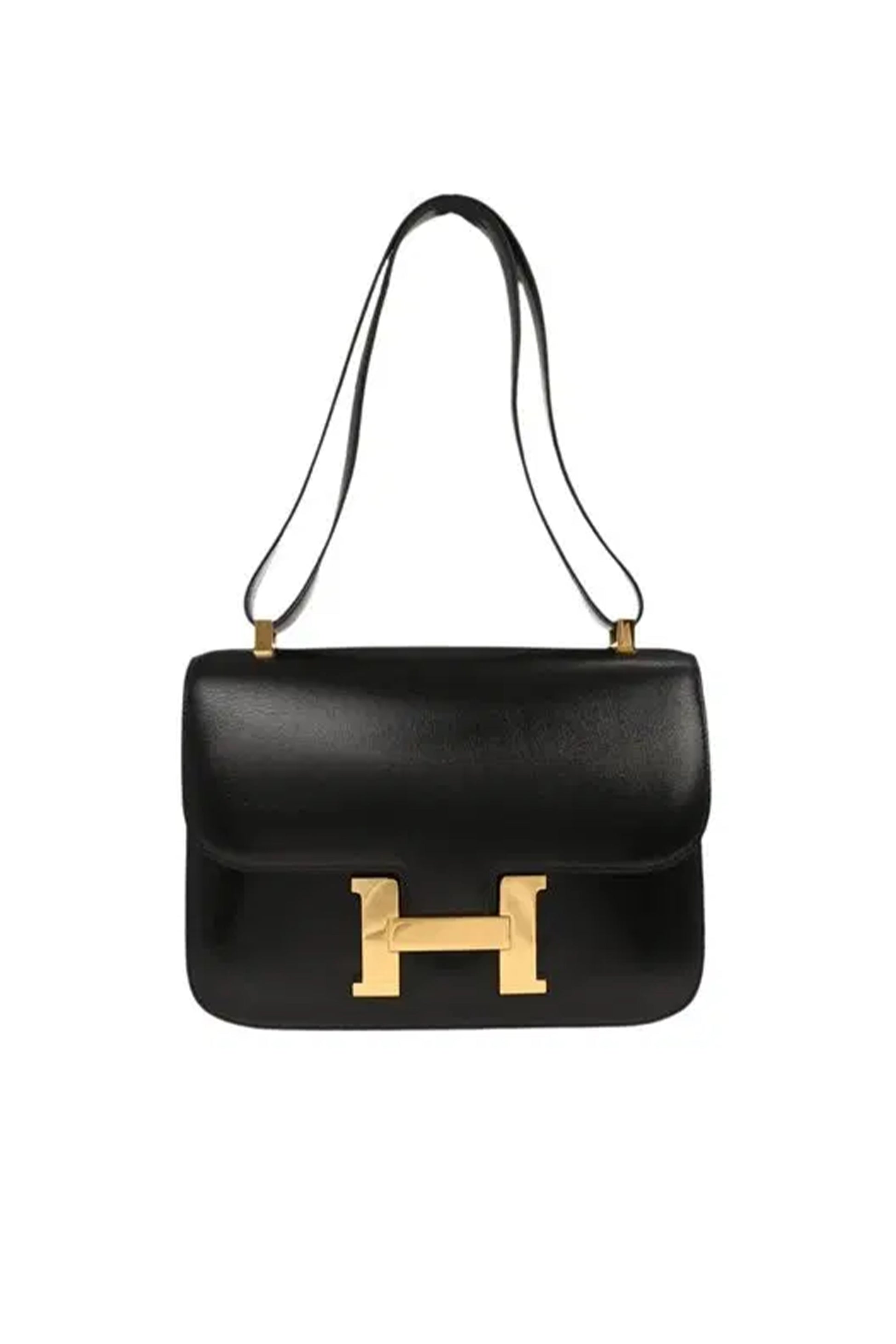 El diseño incorpora una correa larga de hombro en cuero, que permite llevar el bolso cómodamente al hombro o cruzado. El cierre frontal con la emblemática hebilla H dorada aporta un contraste elegante sobre el cuero negro, convirtiéndolo en un verdadero clásico del lujo.