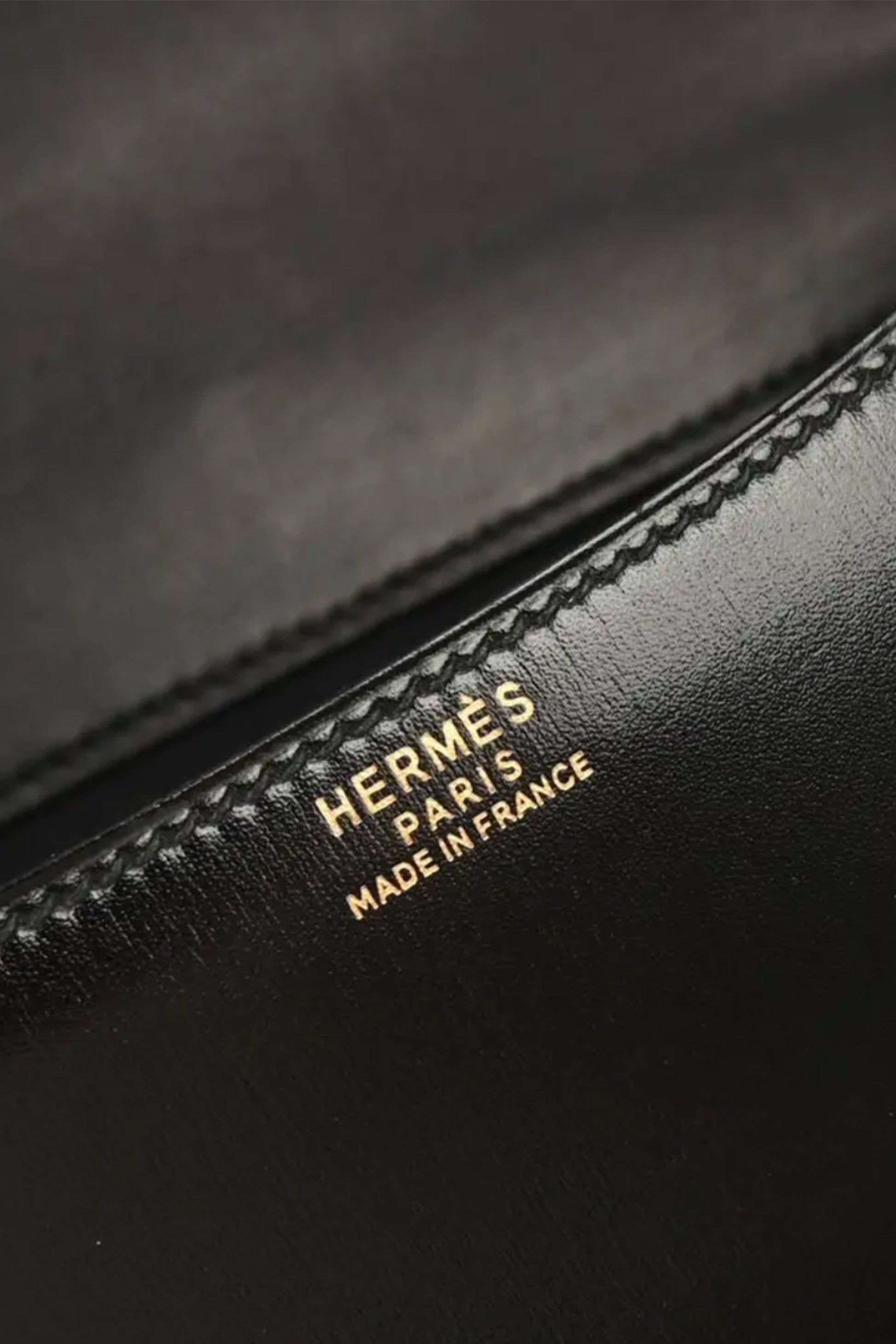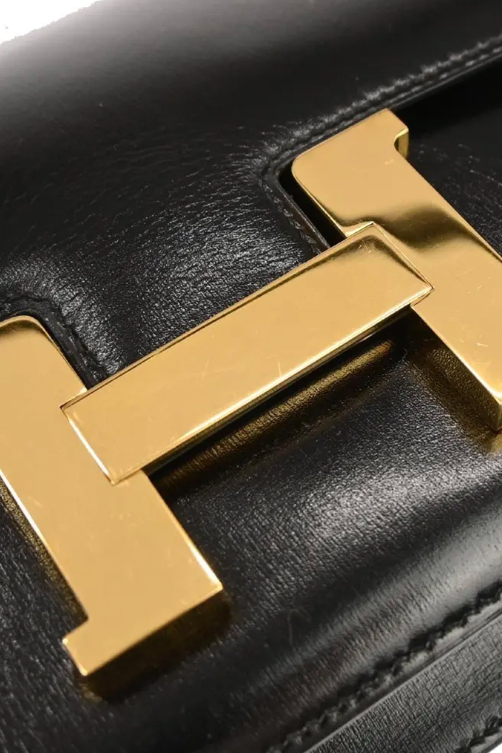 Esta versión vintage Constance 23 está confeccionada en cuero Box Calf negro, una de las pieles más clásicas de Hermès, conocida por su acabado liso, elegante y ligeramente brillante que aporta un aspecto refinado y atemporal.