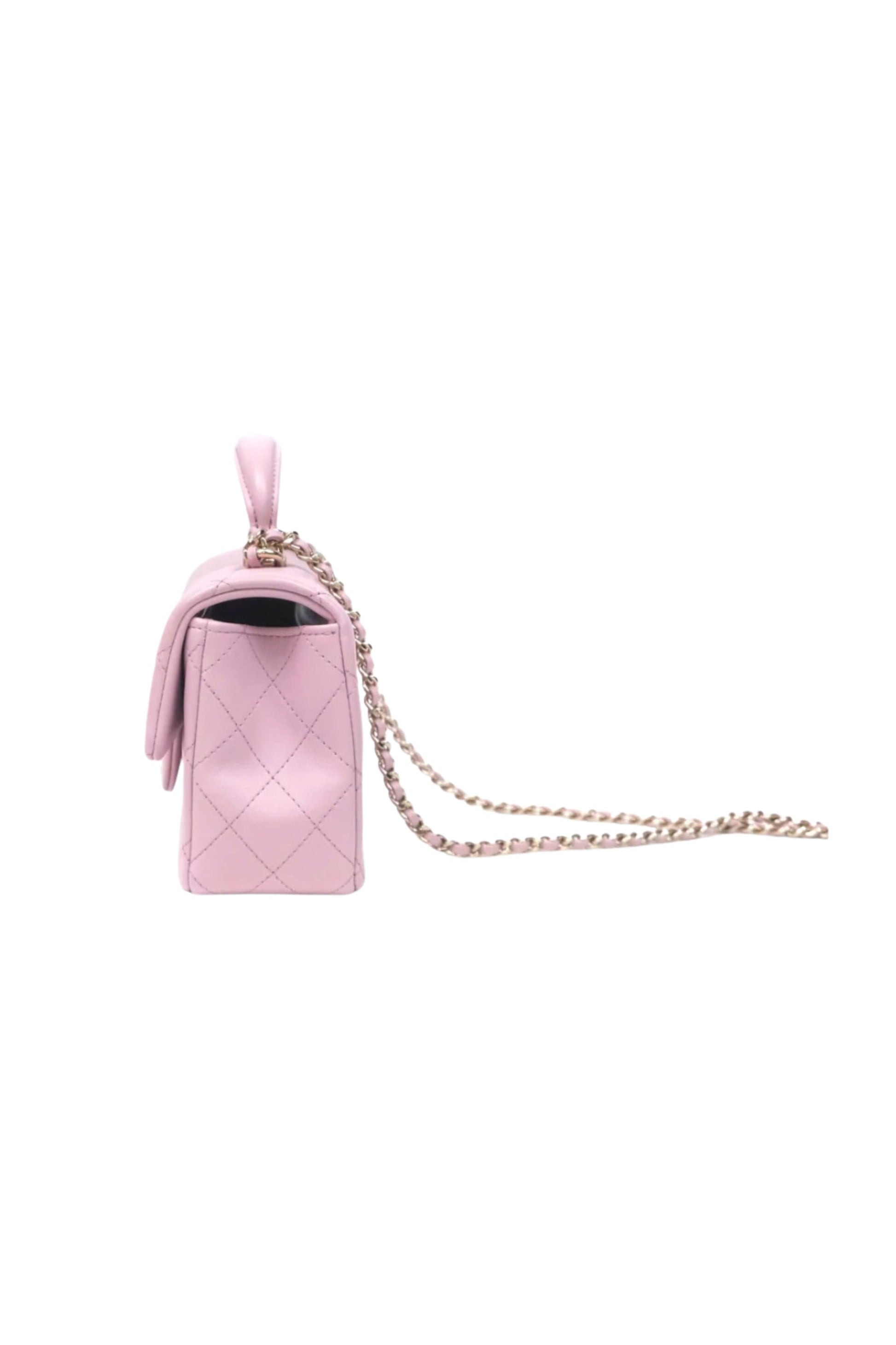 Chanel Top Handle Mini Rectangular Flap en Lambskin Lilac Pink con herrajes Gold.